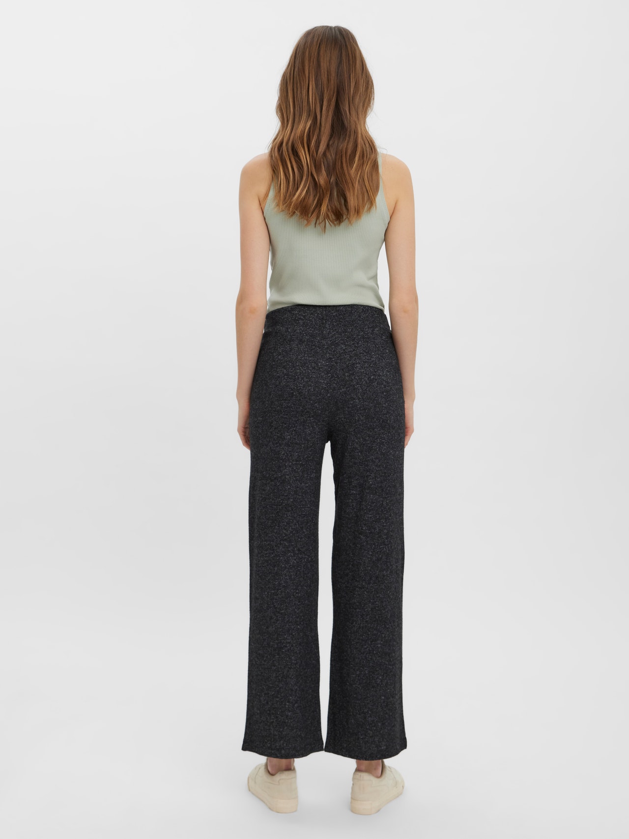 Casual, knitted trousers with wide legs, an elastic waistband, and a high waist. Style these cosy trousers with an oversized shirt and a pair of sneakers for a casual, everyday look.