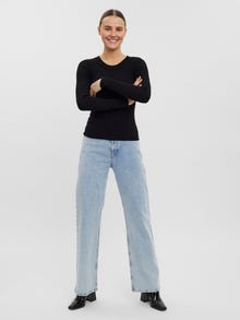 Knitted pullover with a ribbed structure, round neckline, and a tight fit. Style this cute pullover with a pair of wide fit trousers and some chunky boots for a stylish look.