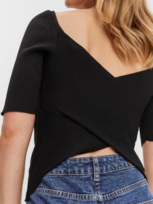 Cropped blouse with a crossed back detail, a square neckline, and short sleeves. Style this cute top with a feminine skirt and add a nice pair of heeled sandals for a cute everyday look.