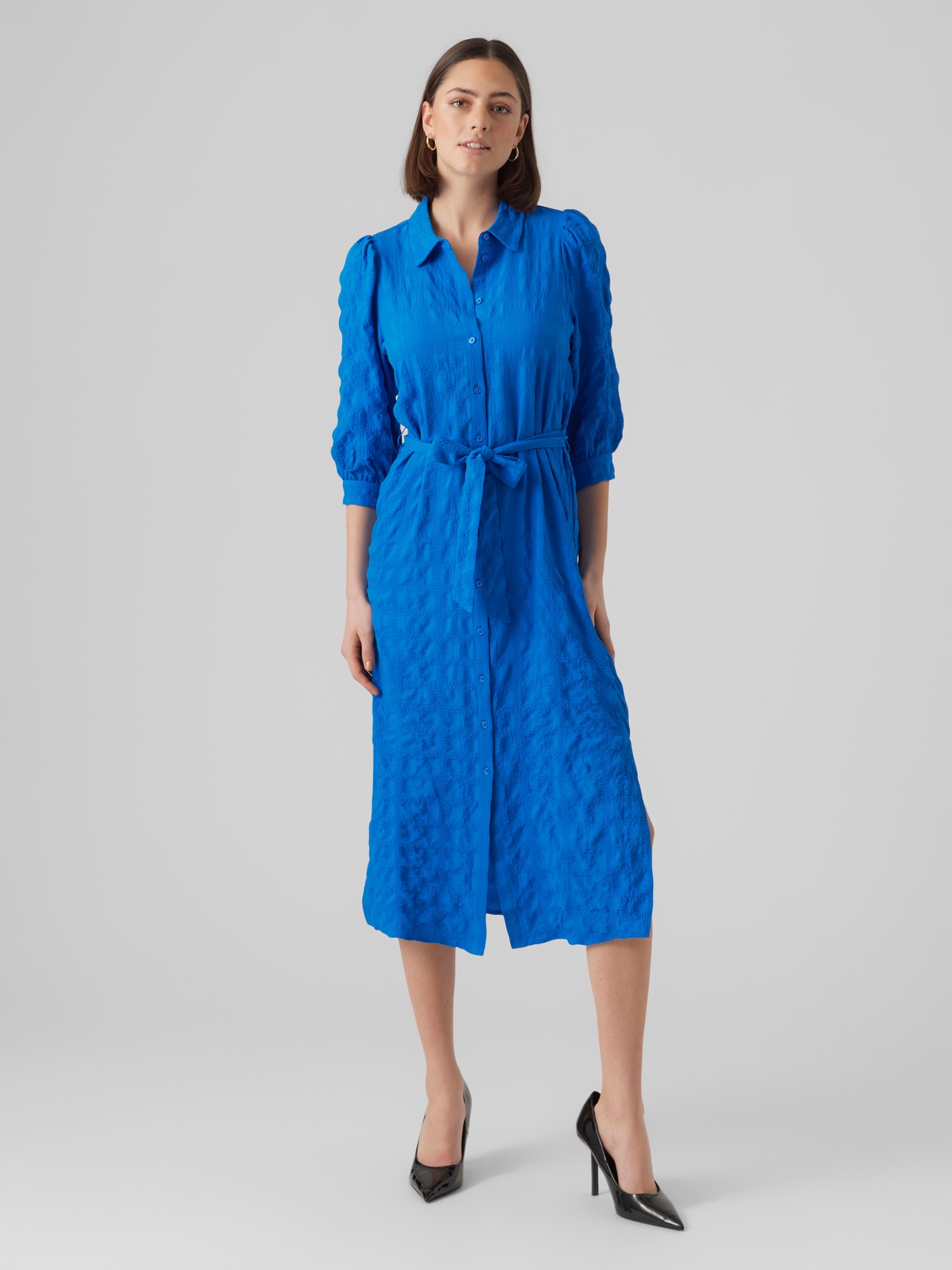 A shirt dress is both versatile and stylish. This style is a wardrobe must-have. Wear it as it is or style it with a pair of jeans. Add a belt at the waist to highlight your figure. With endless styling-possibilities, this shirt dress is perfect for days, where you do not know what to wear.