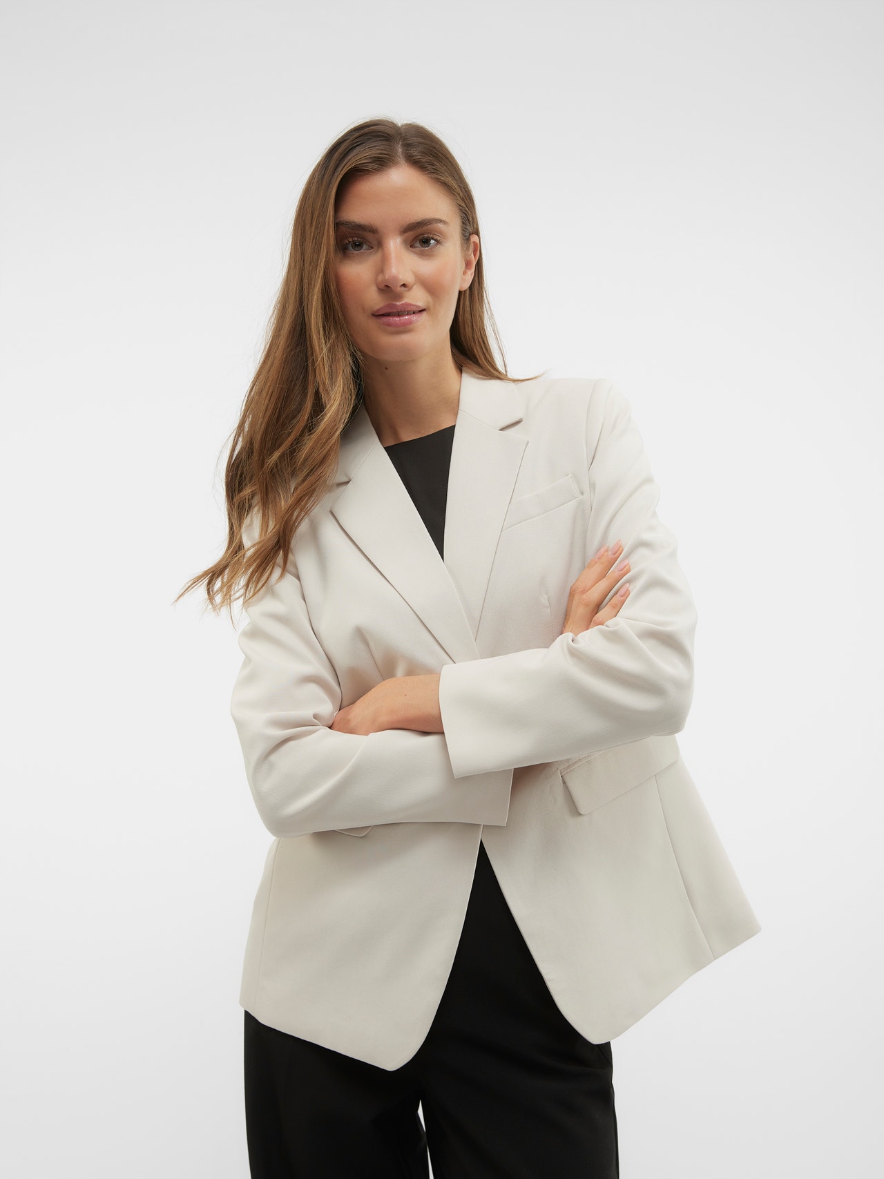 In doubt about what to wear? Throw on a blazer. This blazer is your stylish go-to. No matter if you are wearing it over a top of a simple T-shirt - the blazer always adds its own sophistication and class. Style it with wide jeans and heeled shoes for an elevated everyday look.