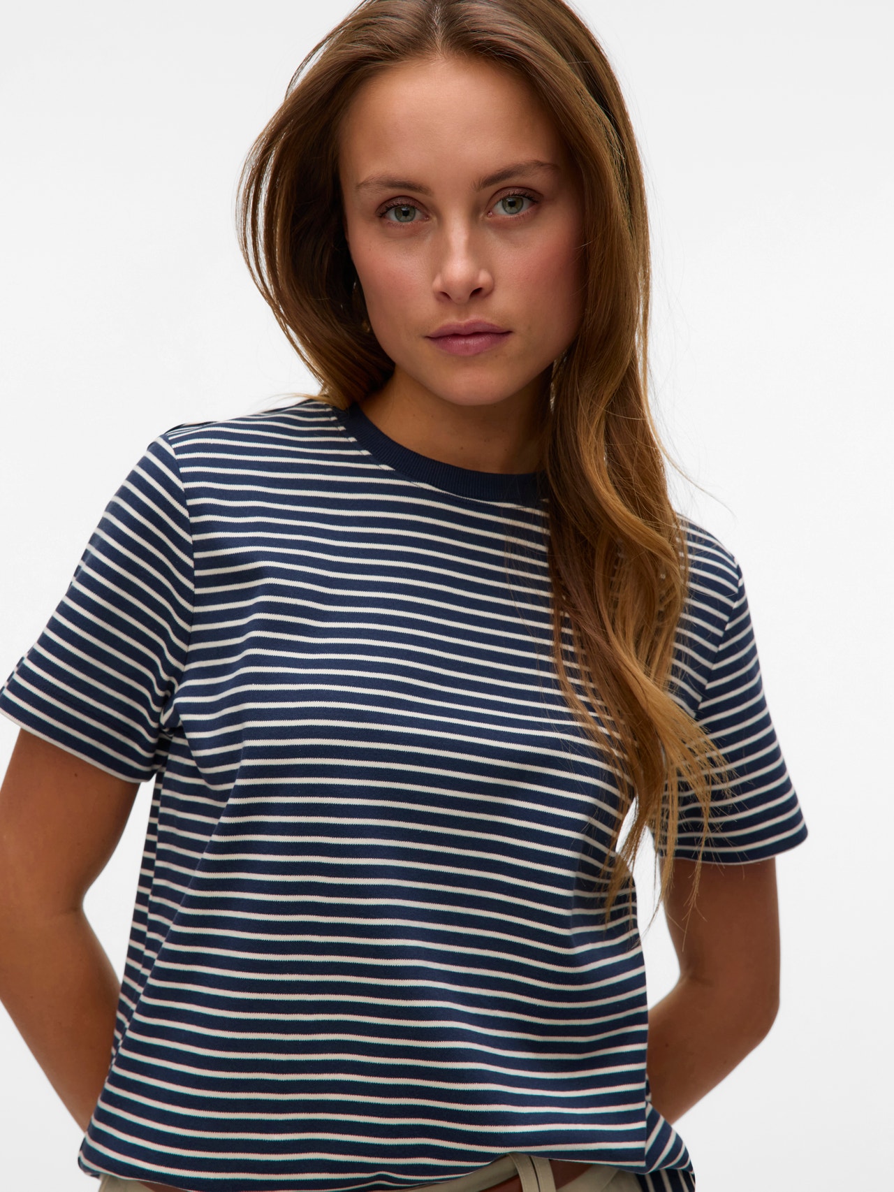 When in doubt, wear a T-shirt! You can never go wrong with a T-shirt - a perfect choice for a cool and timeless look. Wear this T-shirt with nice boyfriend jeans and add a pair of chunky sneakers for an urban city look.