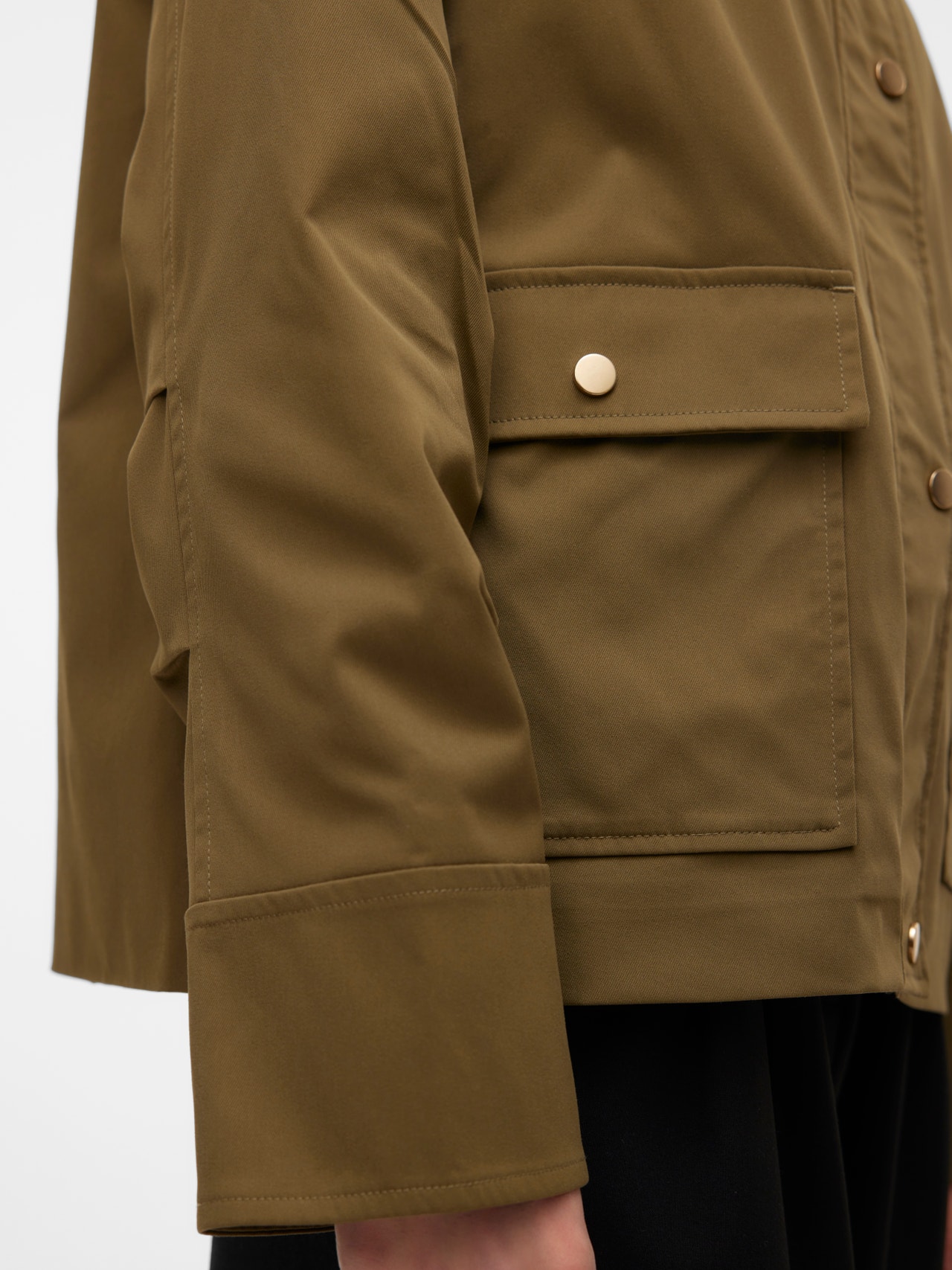 - Neck : High stand-up collar