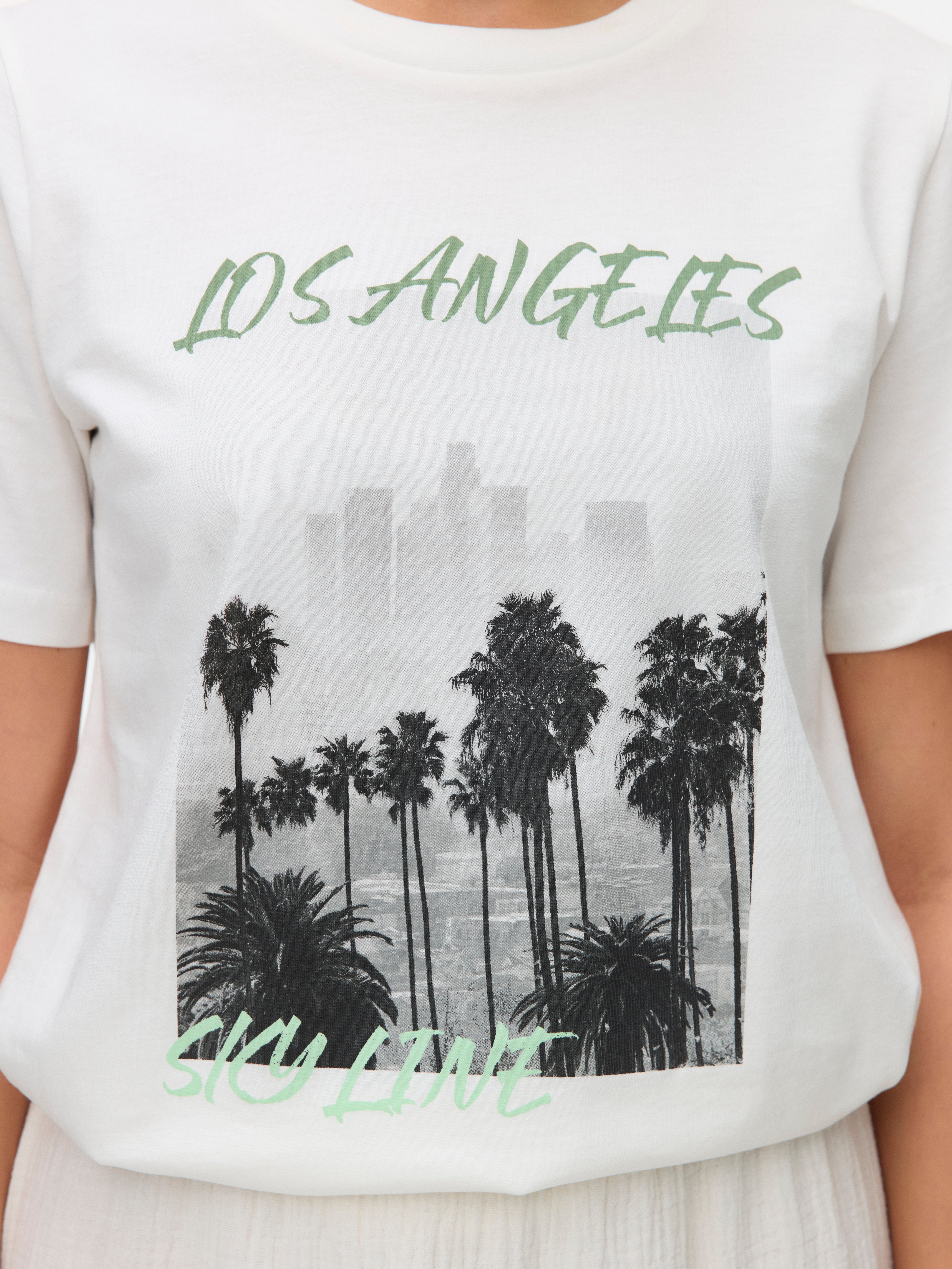 When in doubt, wear a T-shirt! You can never go wrong with a T-shirt - a perfect choice for a cool and timeless look. Wear this T-shirt with nice boyfriend jeans and add a pair of chunky sneakers for an urban city look.