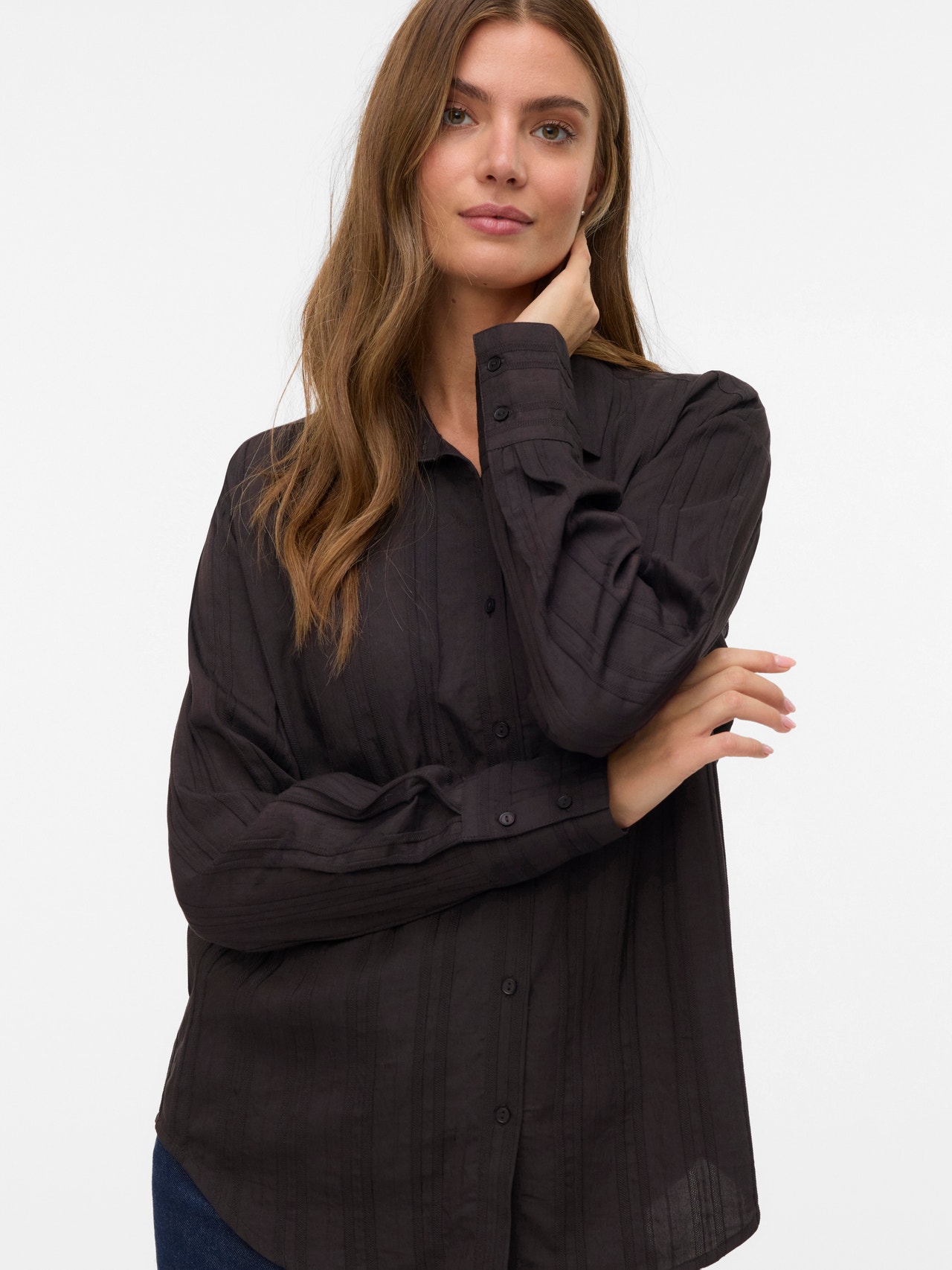This shirt is a chic and versatile addition to your wardrobe as it can be worn on its own as well as used open with a simple top underneath. Pair it with classic jeans and a simple T-shirt for a cool everyday look, or dress it up by adding a pair of trousers and heels.