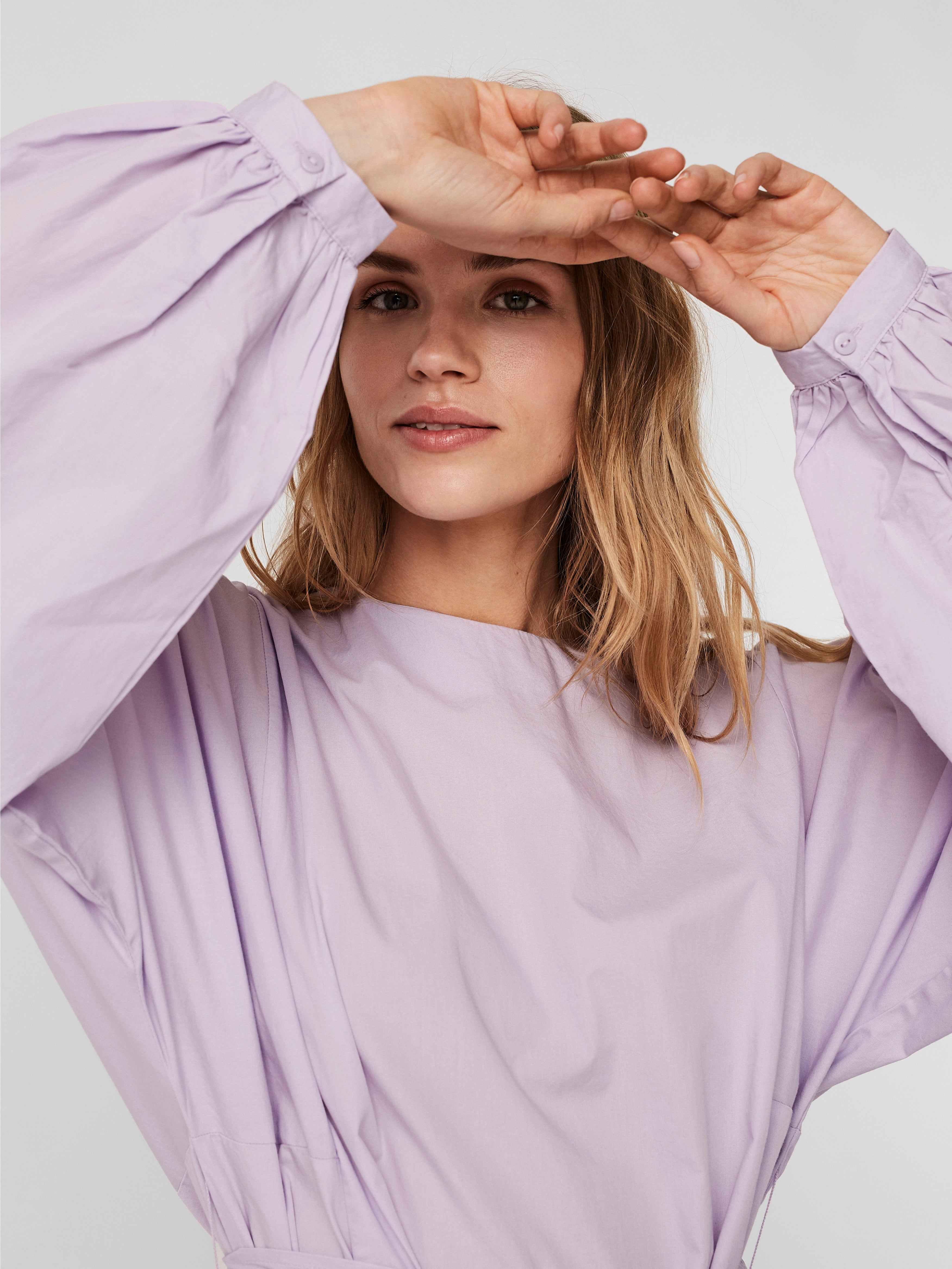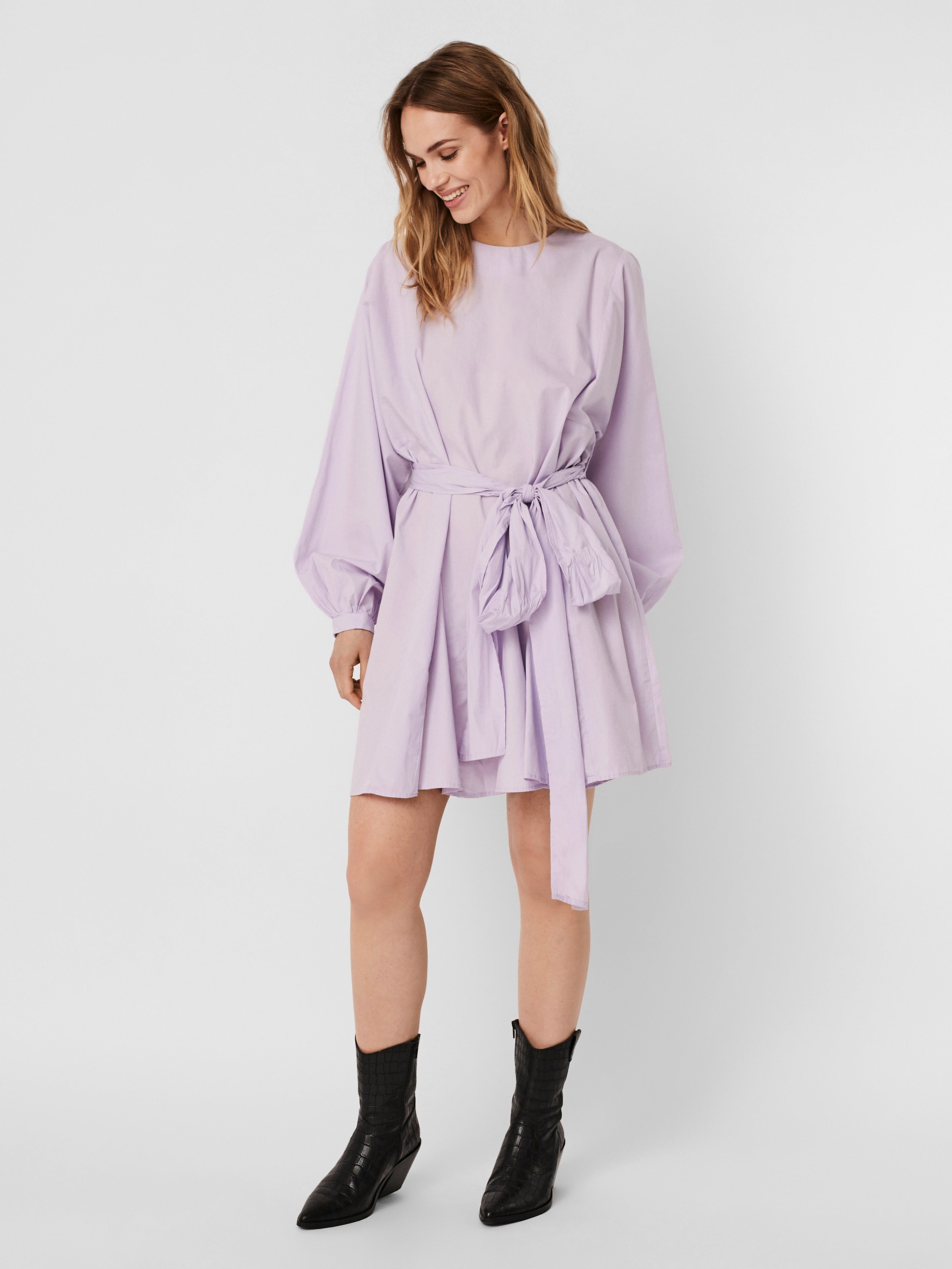 LDS, LONG SLEEVE SHORT DRESS, WOVEN.