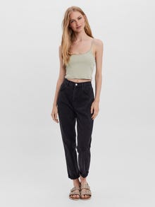Detailed crop top with a round neckline, lace details at the neckline, and thin shoulder straps. Style this playful crop top with some high-waisted skinny jeans and a cute pair of sneakers for a fresh and cute everyday look.
