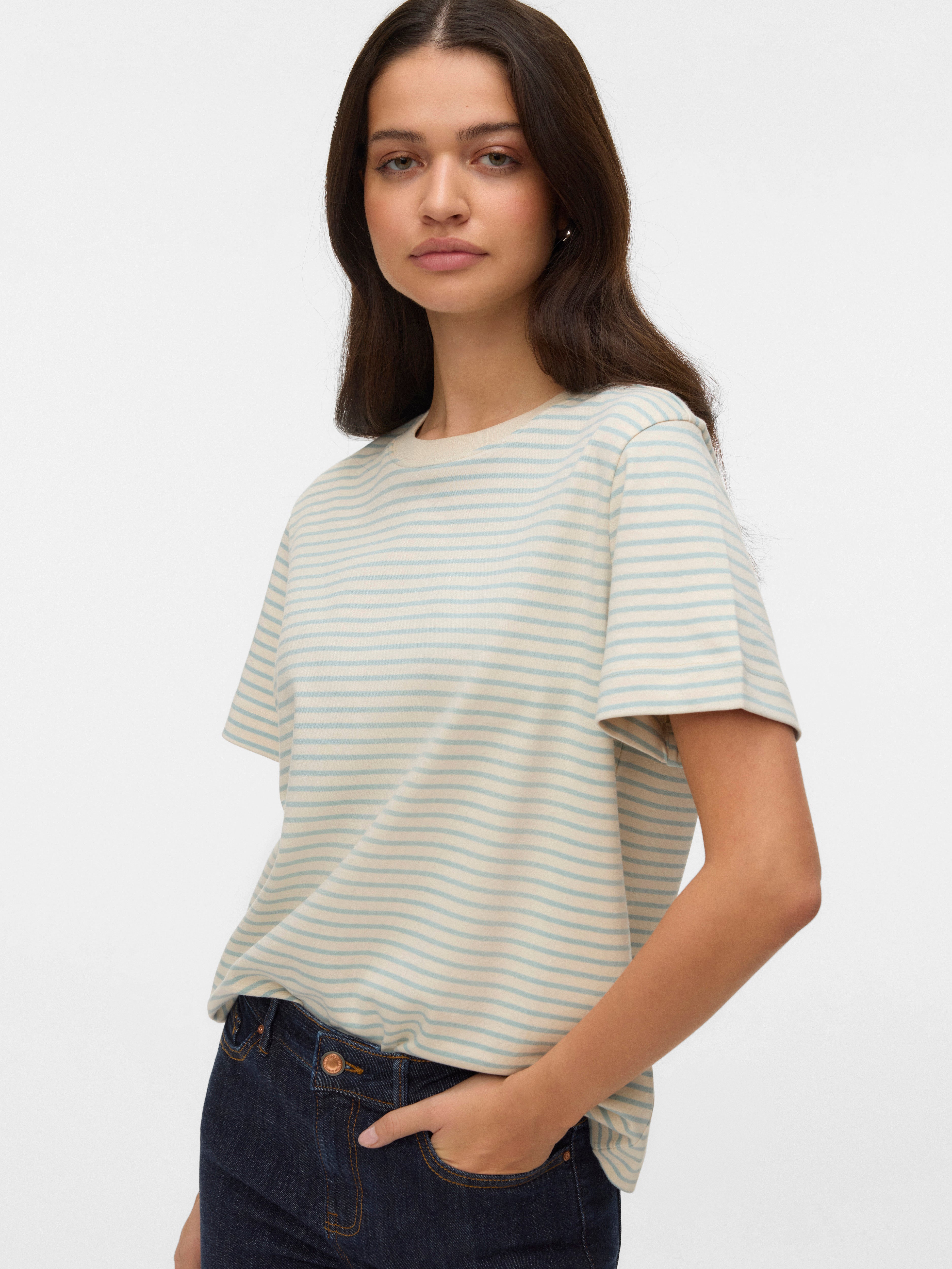 When in doubt, wear a T-shirt! You can never go wrong with a T-shirt - a perfect choice for a cool and timeless look. Wear this T-shirt with nice boyfriend jeans and add a pair of chunky sneakers for an urban city look.