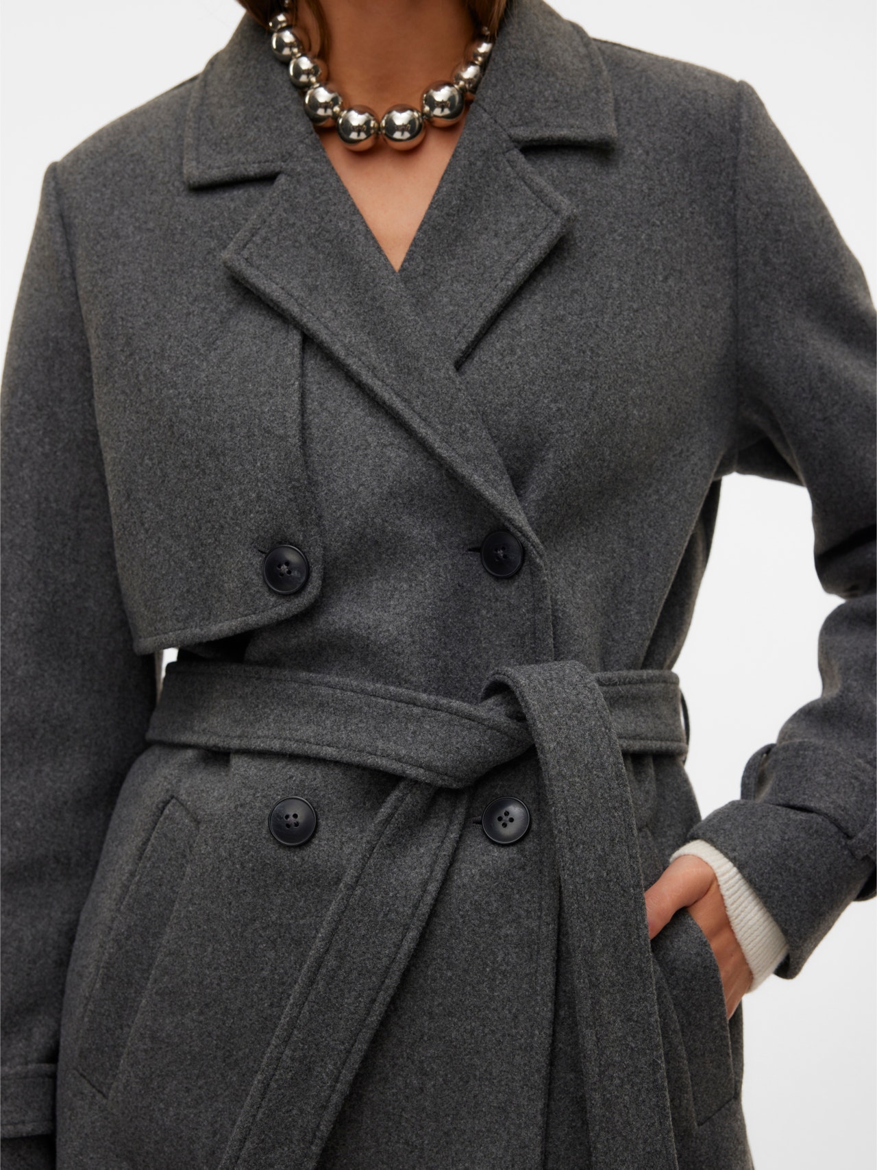 - Closing : Belt fastening, Double breasted button fastening
