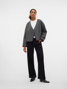 This cropped blazer is great for adding dimension to your look. With a high-waisted bottom piece it really highlights your waist. Style it with high-waisted trousers, a simple top underneath, and boots.