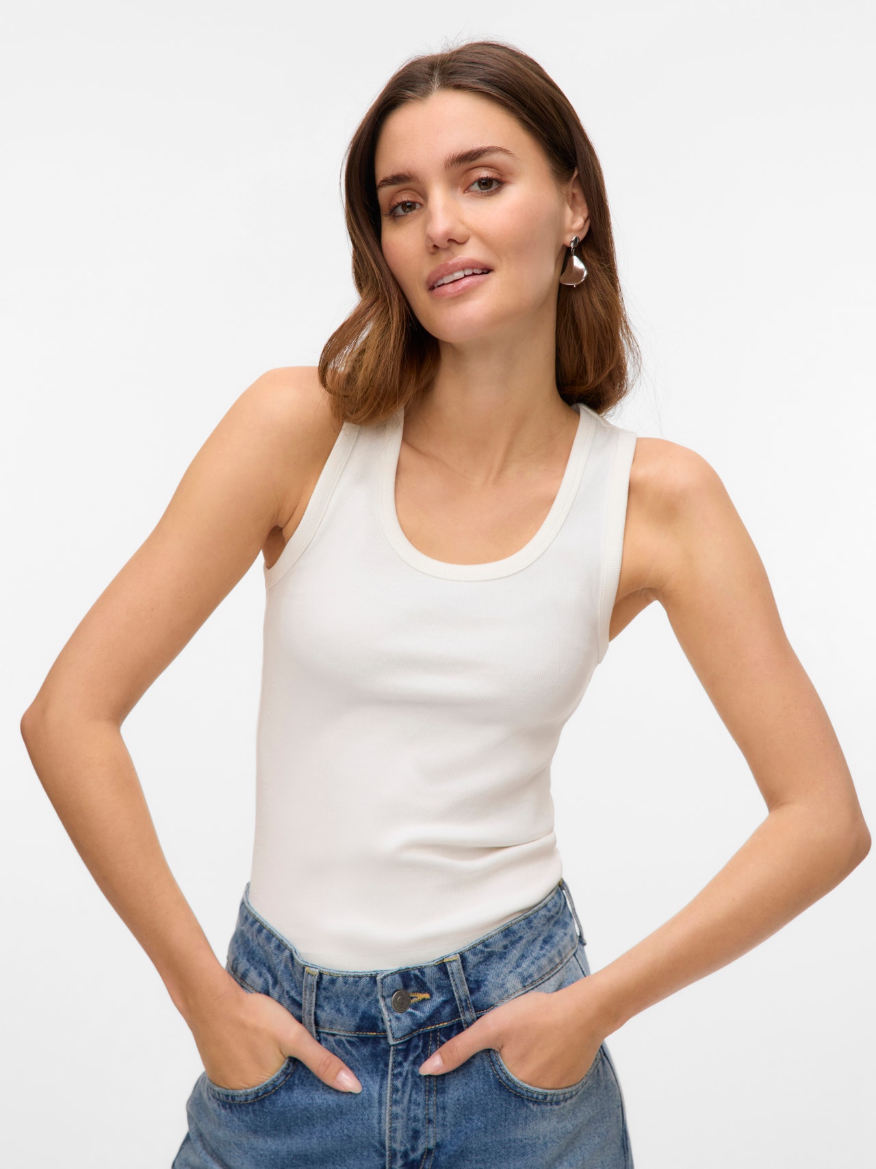Basics are inevitable to find in almost every wardrobe out there. Our basic tops help bind an outfit together and this top makes no exception. Wear it with a shacket on top, a pair of relaxed mom-jeans, and chunky boots and you get a relaxed and cool everyday look.