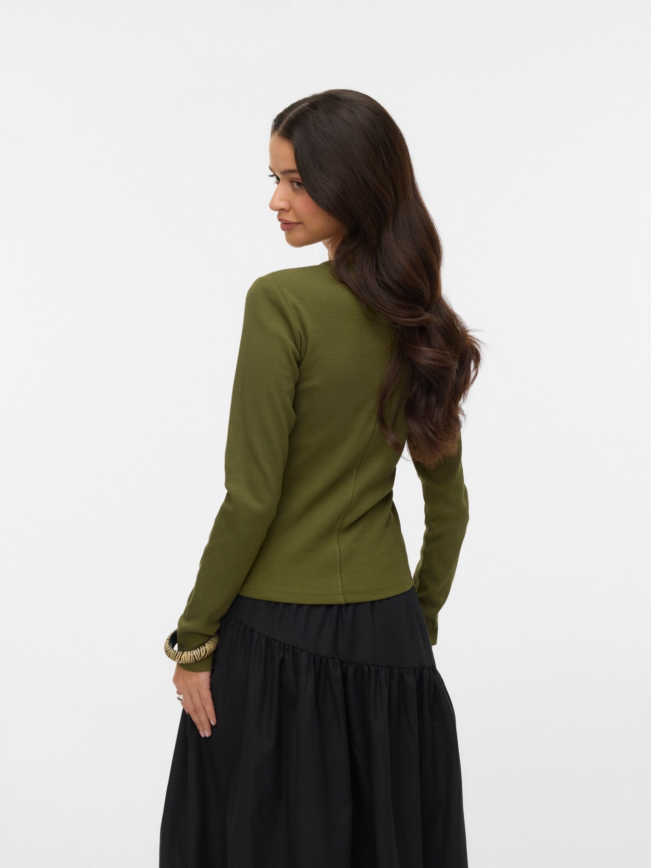 Basics are inevitable to find in almost every wardrobe out there. Our basic tops help bind an outfit together and this top makes no exception. Wear it with a shacket on top, a pair of relaxed mom-jeans, and chunky boots and you get a relaxed and cool everyday look.
