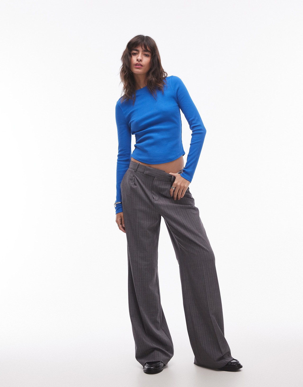 Topshop rib curve hem long sleeve tee in cobalt - MBLUE