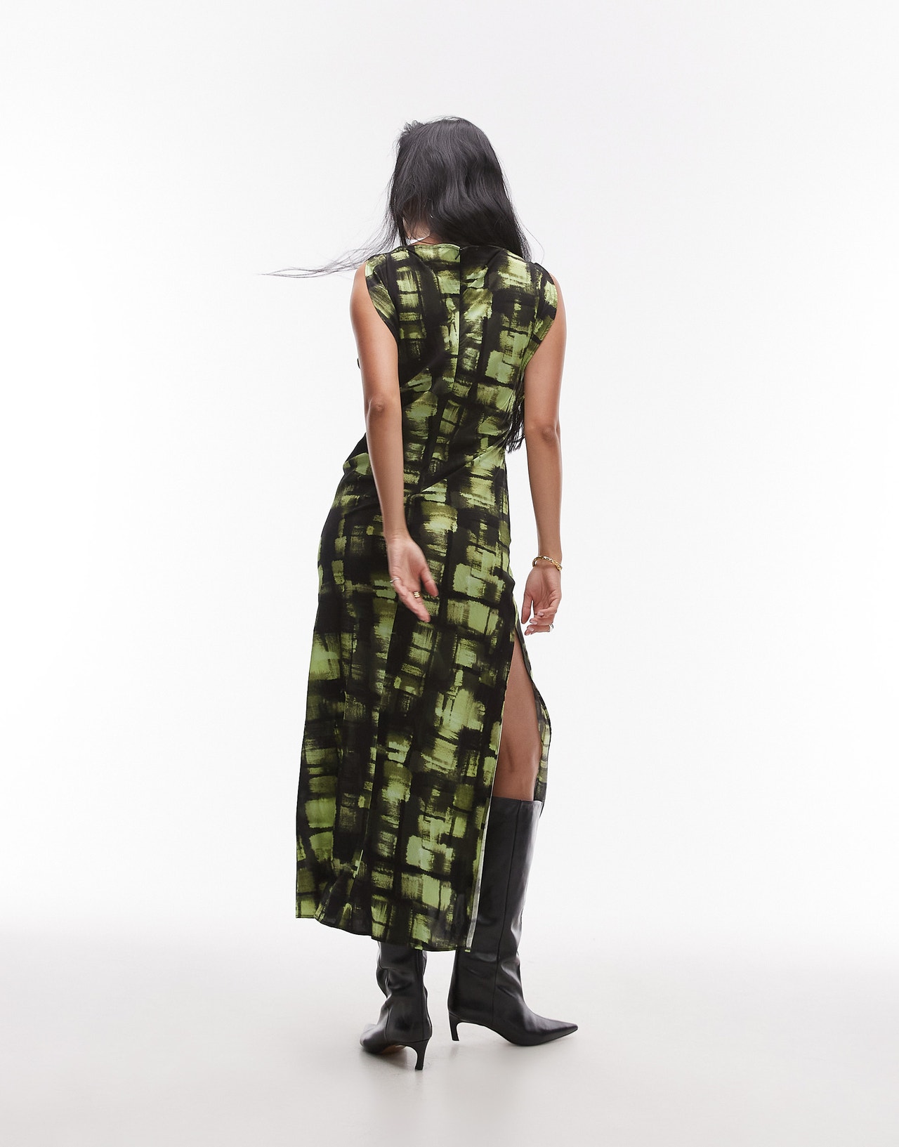 Topshop sliced sleeve ruched side maxi dress in green check print - DGREEN