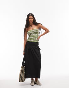 Topshop poplin full skirt with curved dropped waistband in black - BLACK