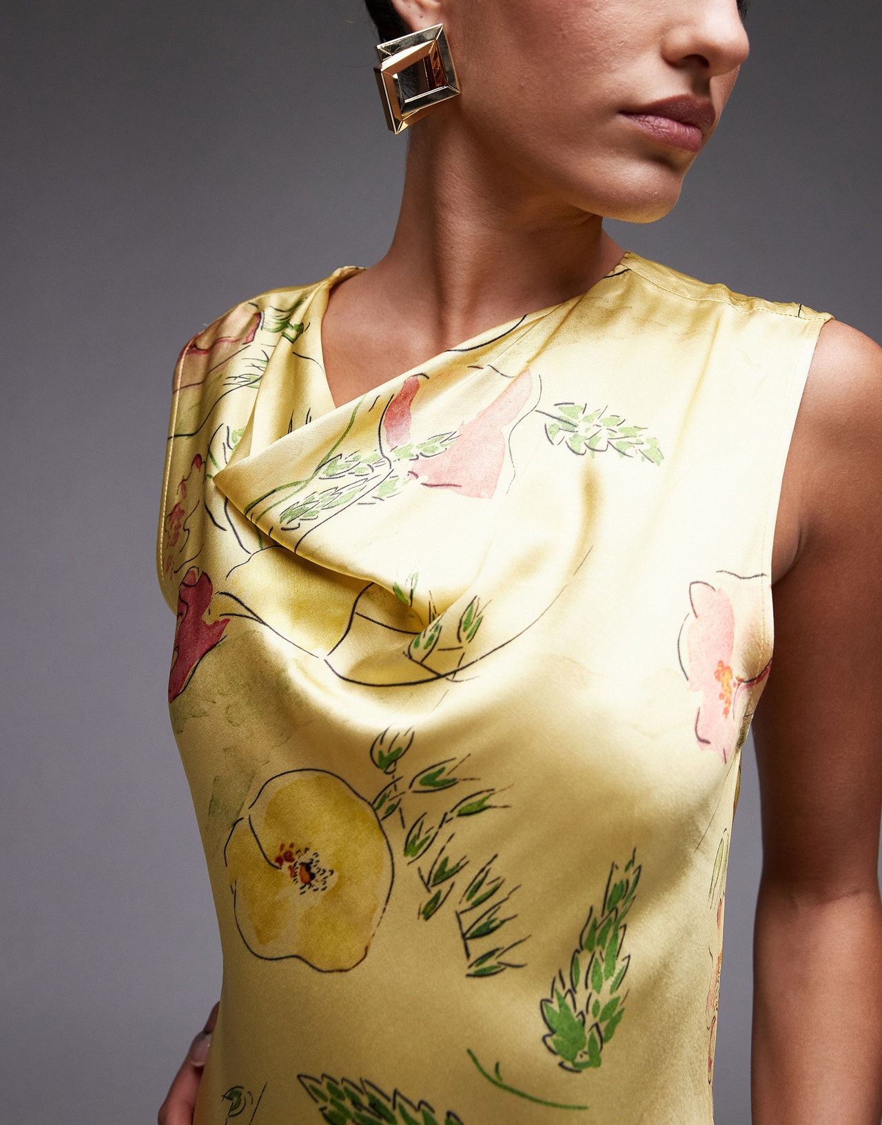 Topshop drape neck maxi dress in lime based floral - LGREEN