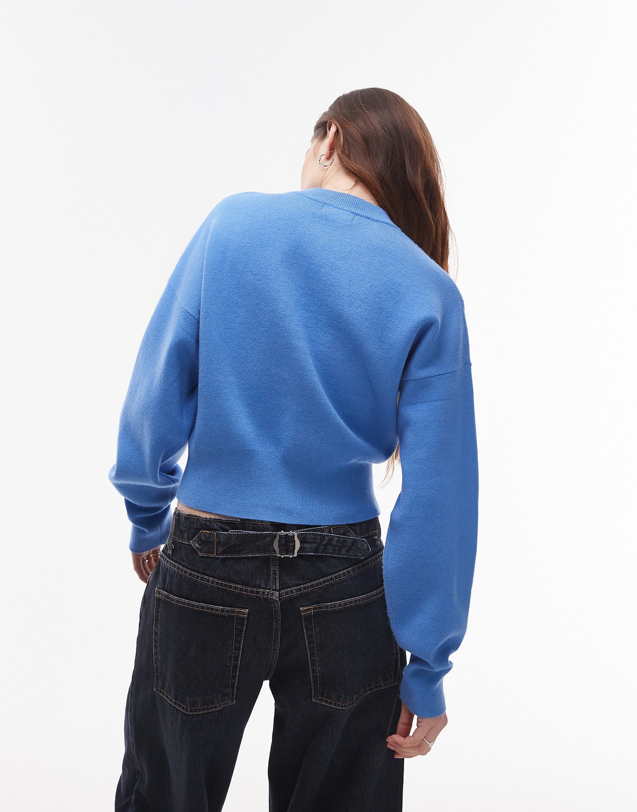 Topshop knitted compact fitted waist cardi in blue - MBLUE