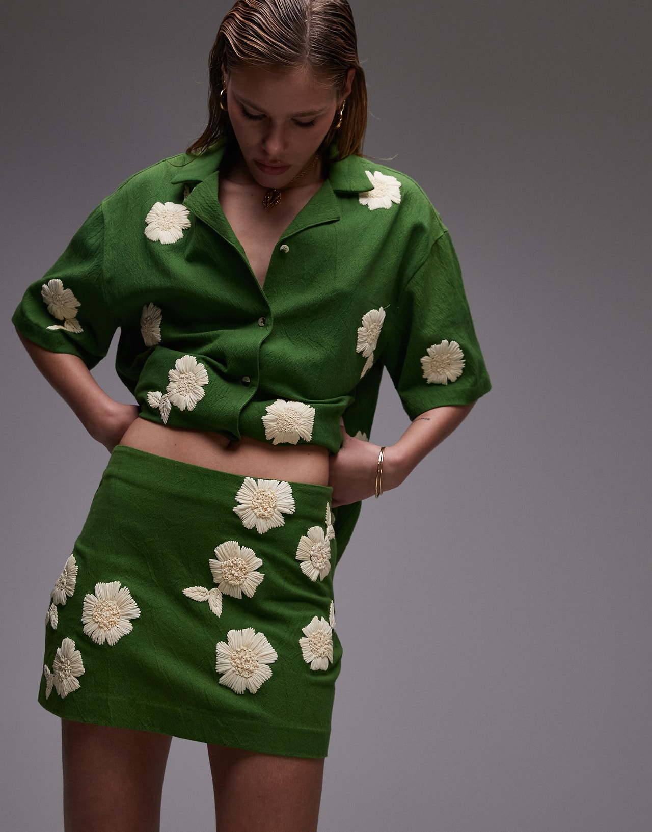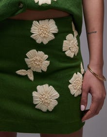 Topshop co-ord pelmet skirt in green with raffia flowers - MGREEN
