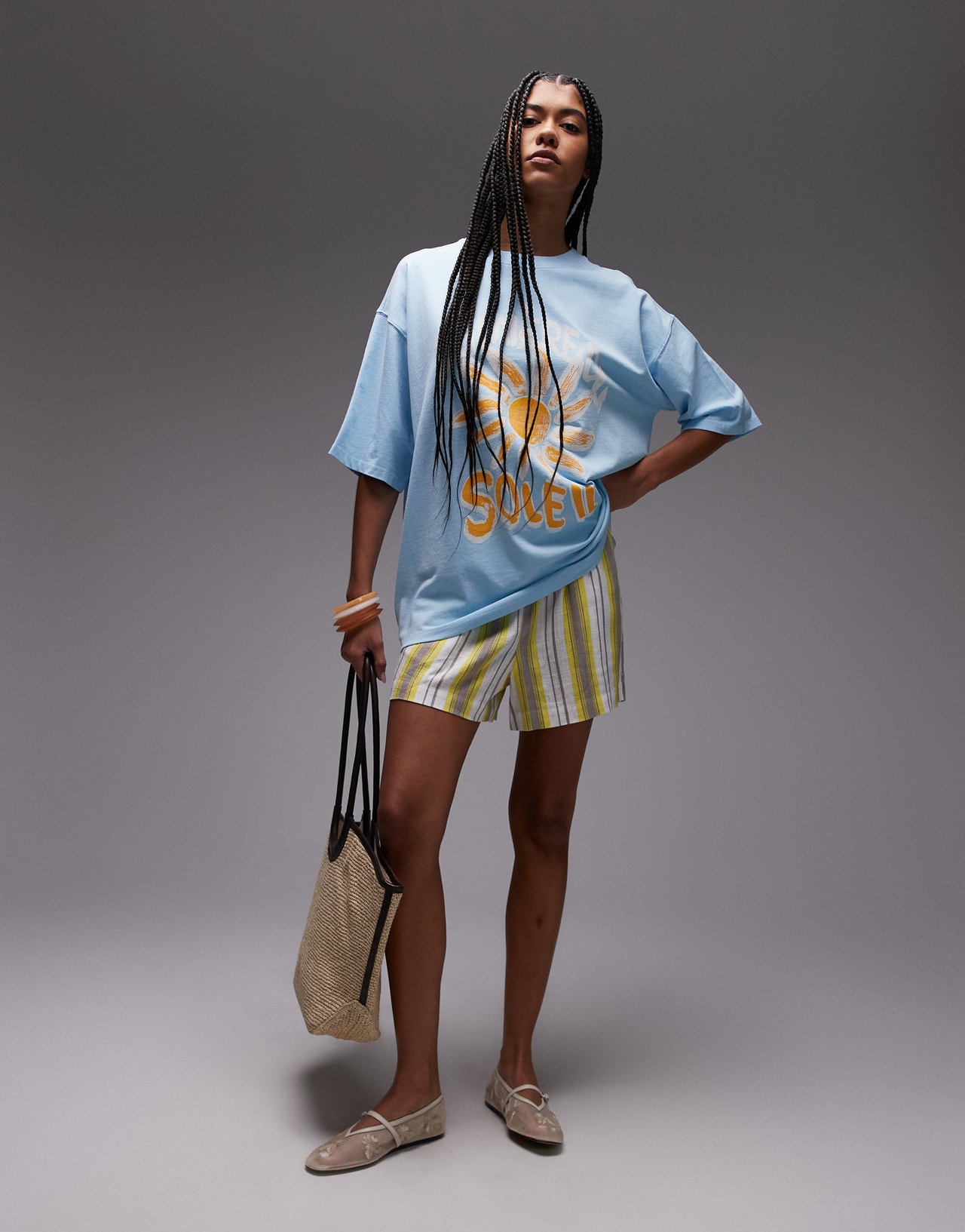 Topshop graphic Soleil oversized tee in light blue - LBLUE