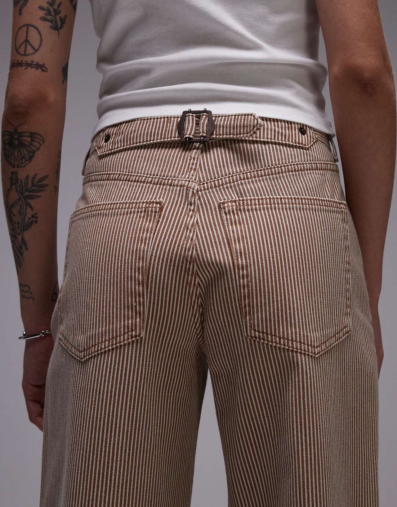 Topshop Cinch low rise relaxed jean in tan stripe - TAN