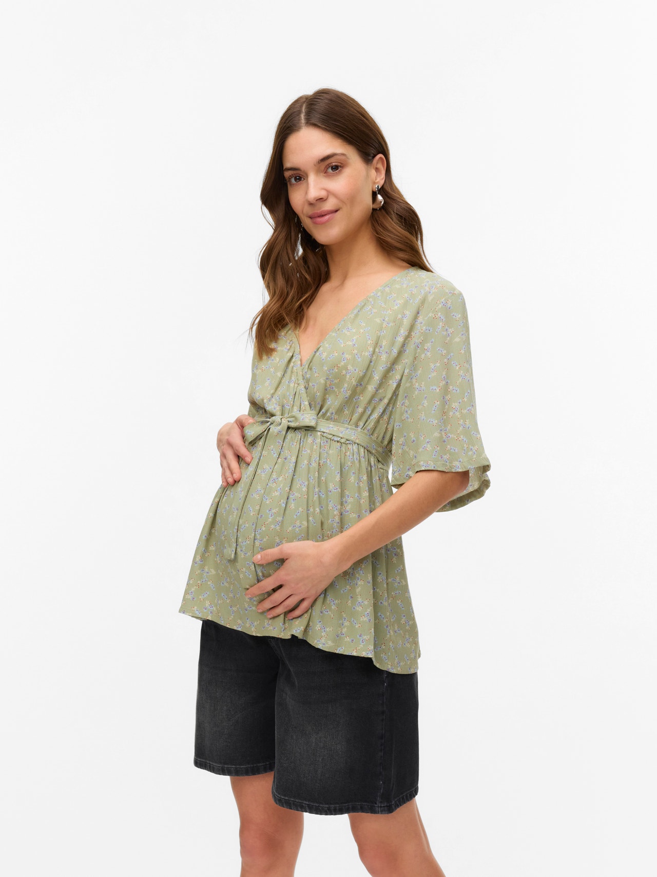 - Extra details : Curved hem, Cutline above bump, Nursing layer under a wrapped effect