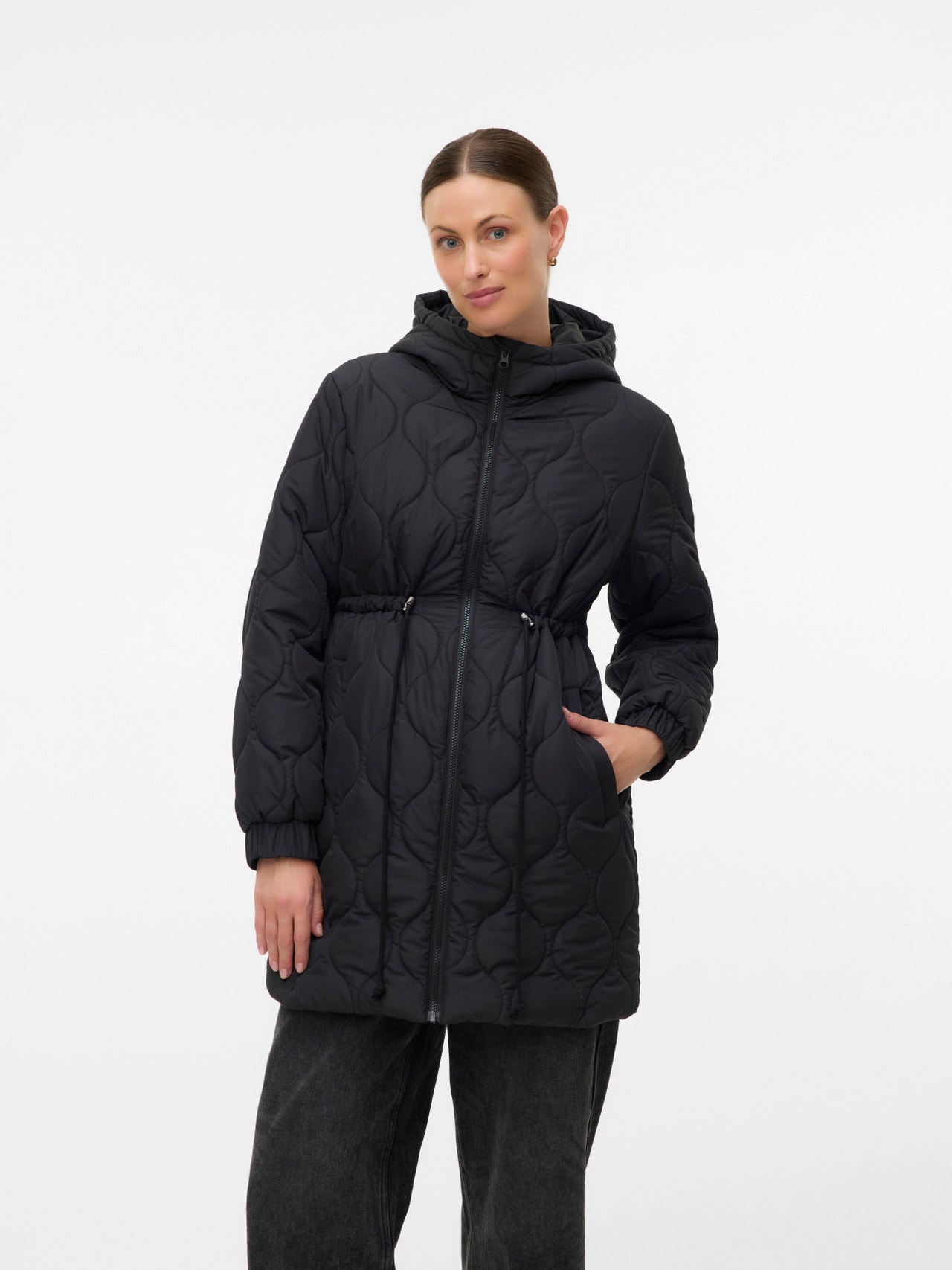 Prepare your wardrobe for a new season with a functional and fashionable 3-in-1outerwear style for pregnancy, post-partum for carrying your child and as a regular jacket. Use it during pregnancy by adding the panel or adjusting the fit; use it post-partum with the practical carry function for your baby; attach the carry panel in front to ensure space for a baby sling, baby carrier, or baby wrap, or wear it as a regular jacket and create a cosy, clean look.