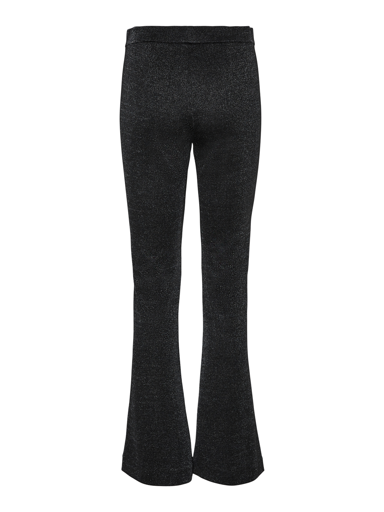 Glittery trousers with flared legs and an elastic waistband. The trousers are made form a soft viscose blend material. Wear them with a top for a feminine party look.