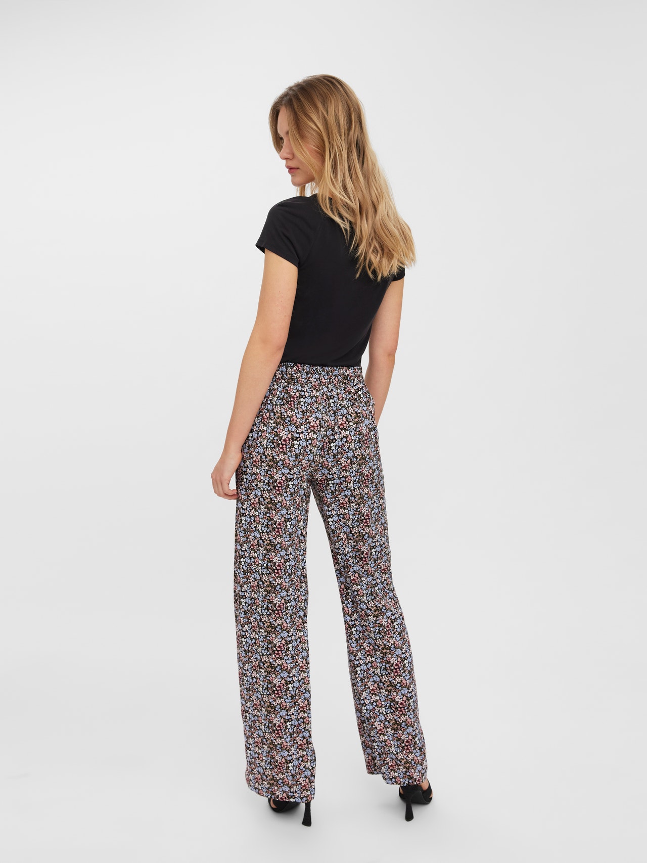 Trousers with wide legs and a high waist. The trousers also have an elastic waistband. Style these stylish trousers with a cute top for everyday wear.