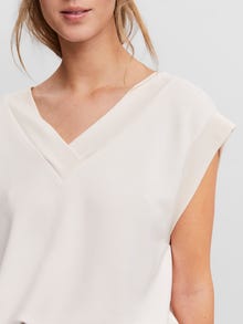 Vest with short sleeves, a v-neckline, and wide seams by the neckline and sleeve opening. Style this stunning vest with some pleated trousers and some heeled boots for a sophisticated everyday look.