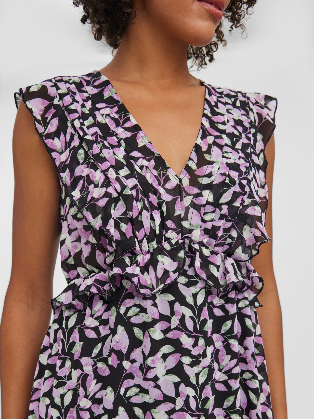 Maxi dress with a V-neck, frills at the waist, and a regular fit. Style this tunning dress with a pair of heels and a cute shoulder bag for the perfect summer occasion look.