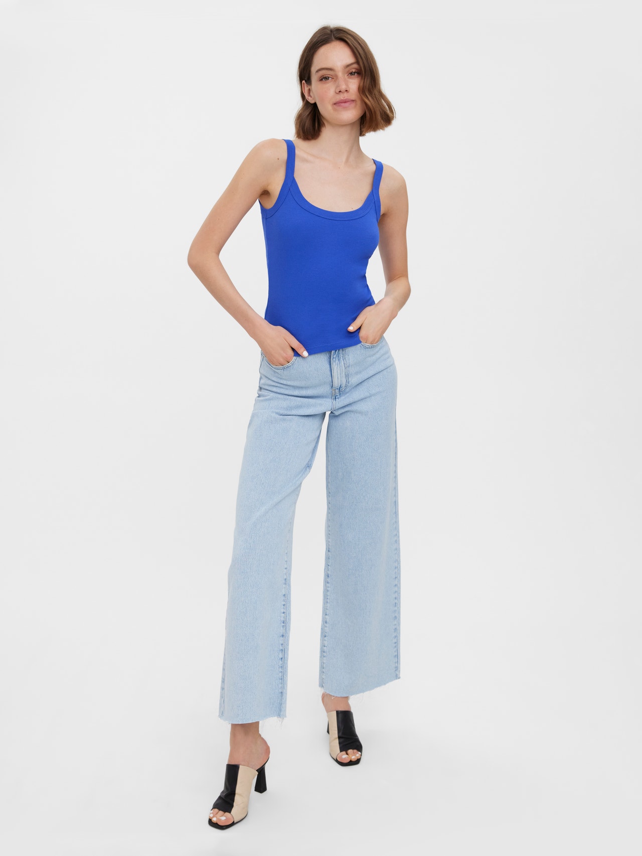 Basics are inevitable to find in almost every wardrobe out there. Our basic tops help bind an outfit together and this top makes no exception. Wear it with a shacket on top, a pair of relaxed mom-jeans, and chunky boots and you get a relaxed and cool everyday look.