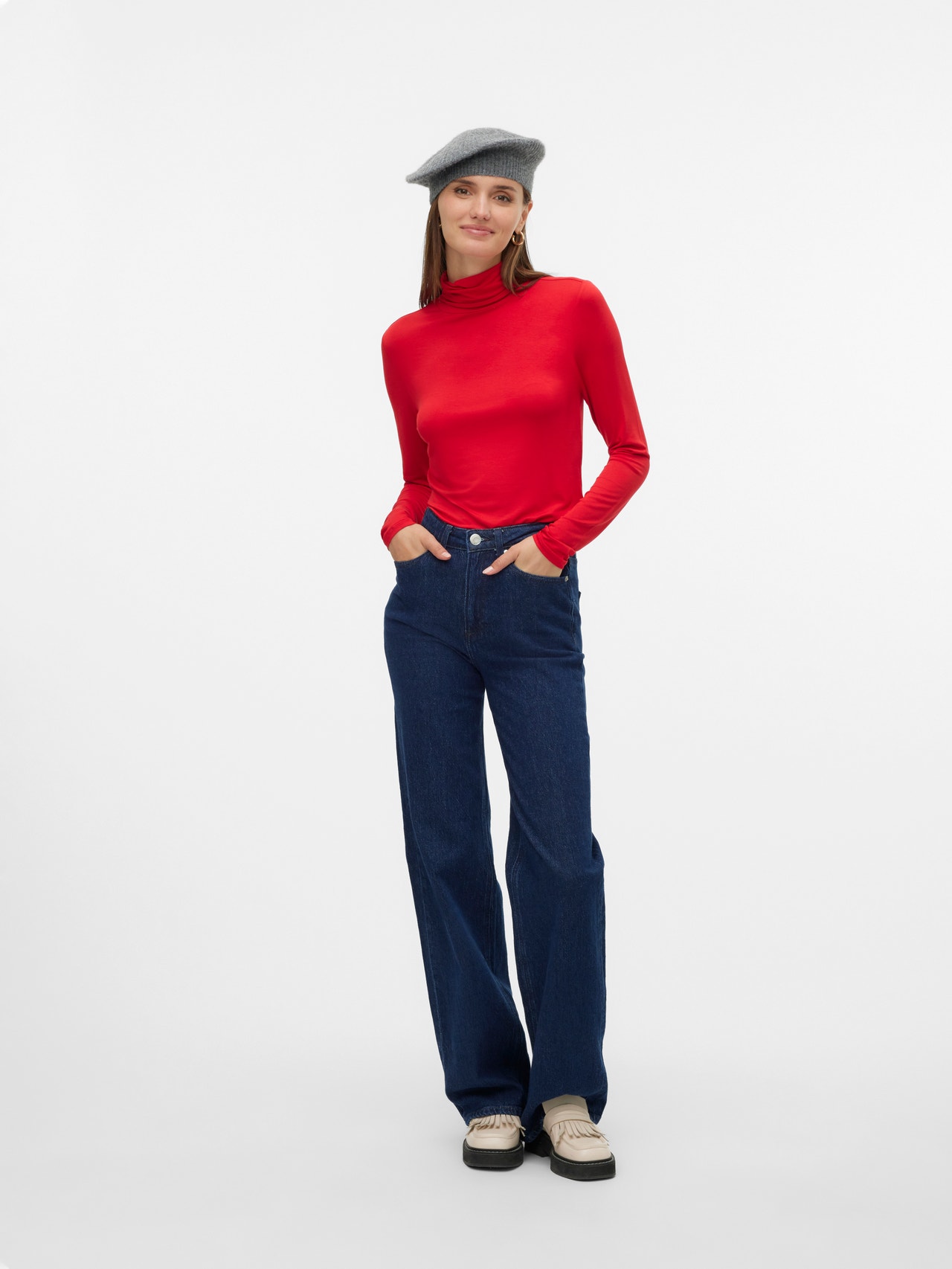 Basics are inevitable to find in almost every wardrobe out there. Our basic tops help bind an outfit together and this top makes no exception. Wear it with a shacket on top, a pair of relaxed mom-jeans, and chunky boots and you get a relaxed and cool everyday look.