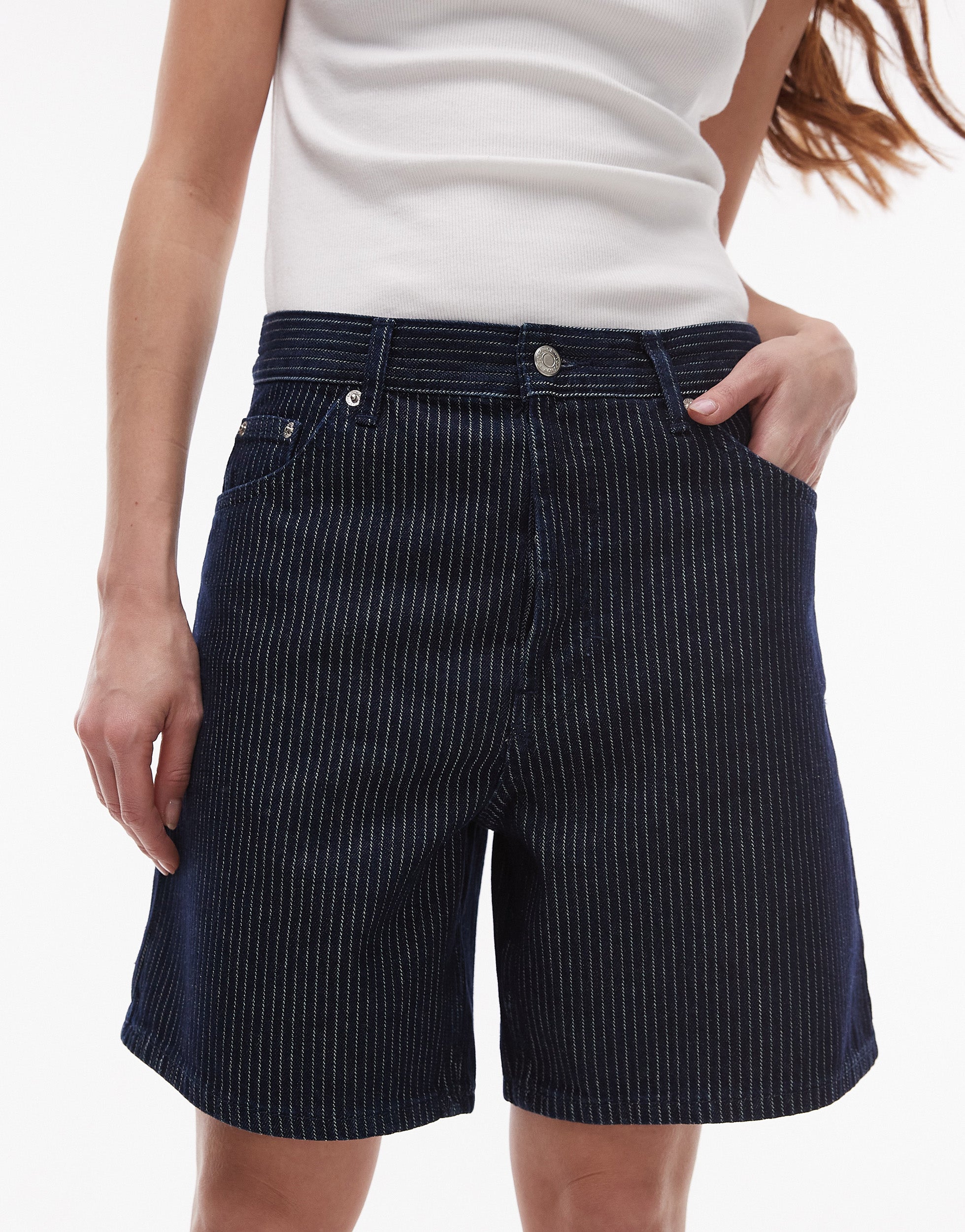 Topshop denim loose fit jort in dark blue stripe - MULTI