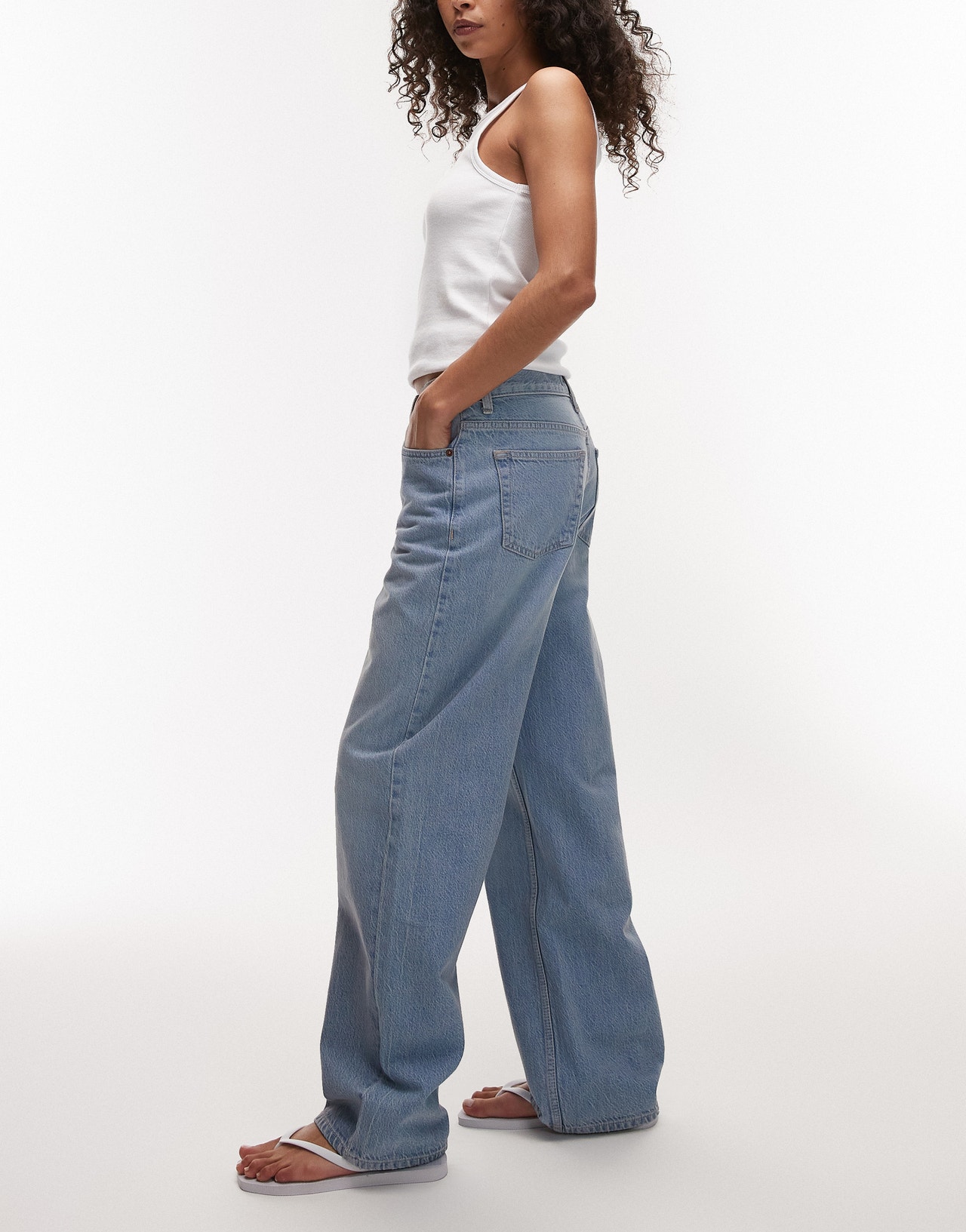 Topshop mid rise loose fit straight jean in bleach - LBLUE