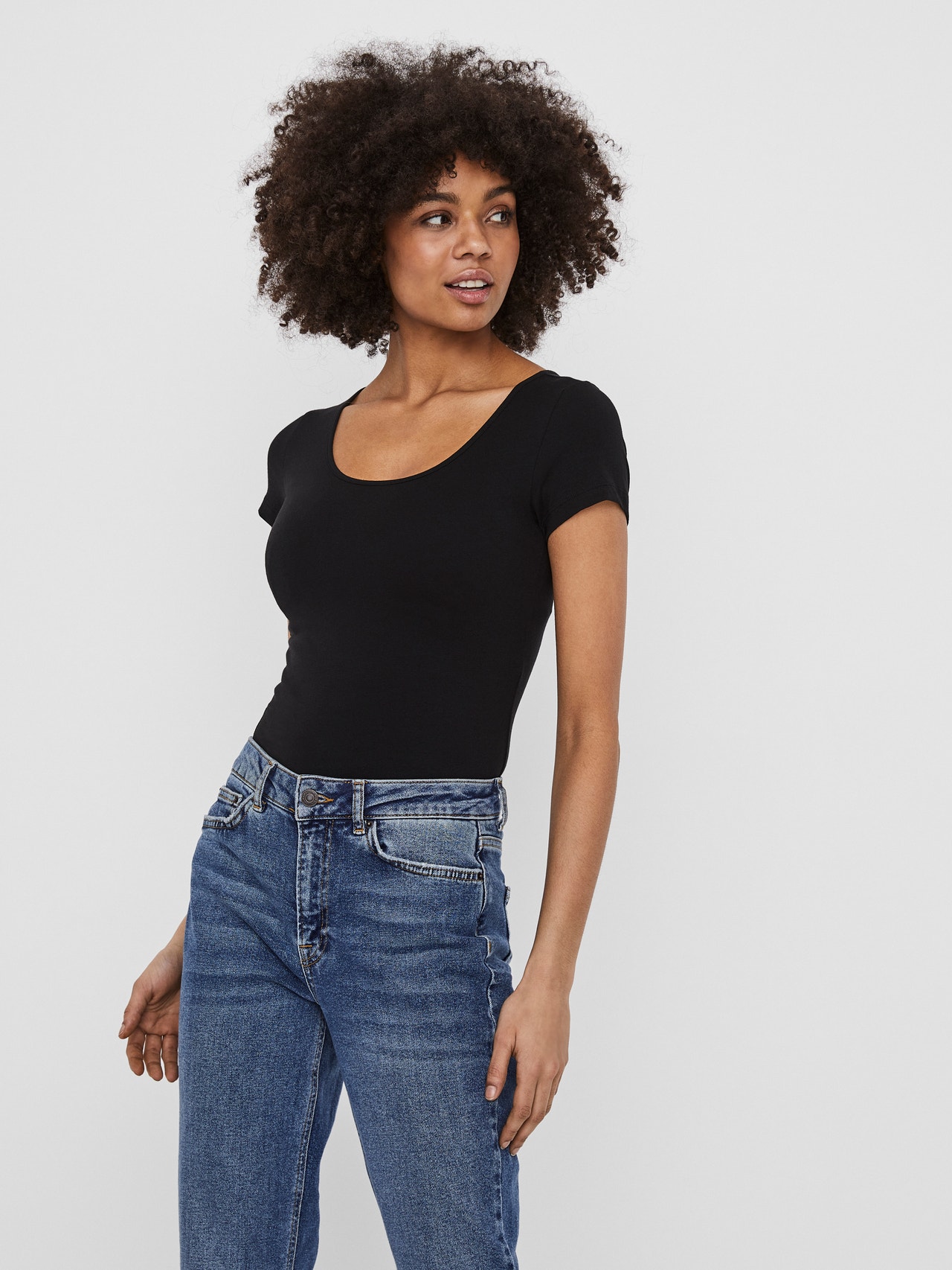 En cualquier armario que se precie siempre encontrarás prendas básicas. Nuestros tops básicos son ideales para crear conjuntos con mucho estilo, y este modelo no es la excepción. Combínalo con una chaqueta camisera, unos vaqueros holgados de corte mom y unas botas robustas para conseguir un look cotidiano de lo más desenfadado y vanguardista..