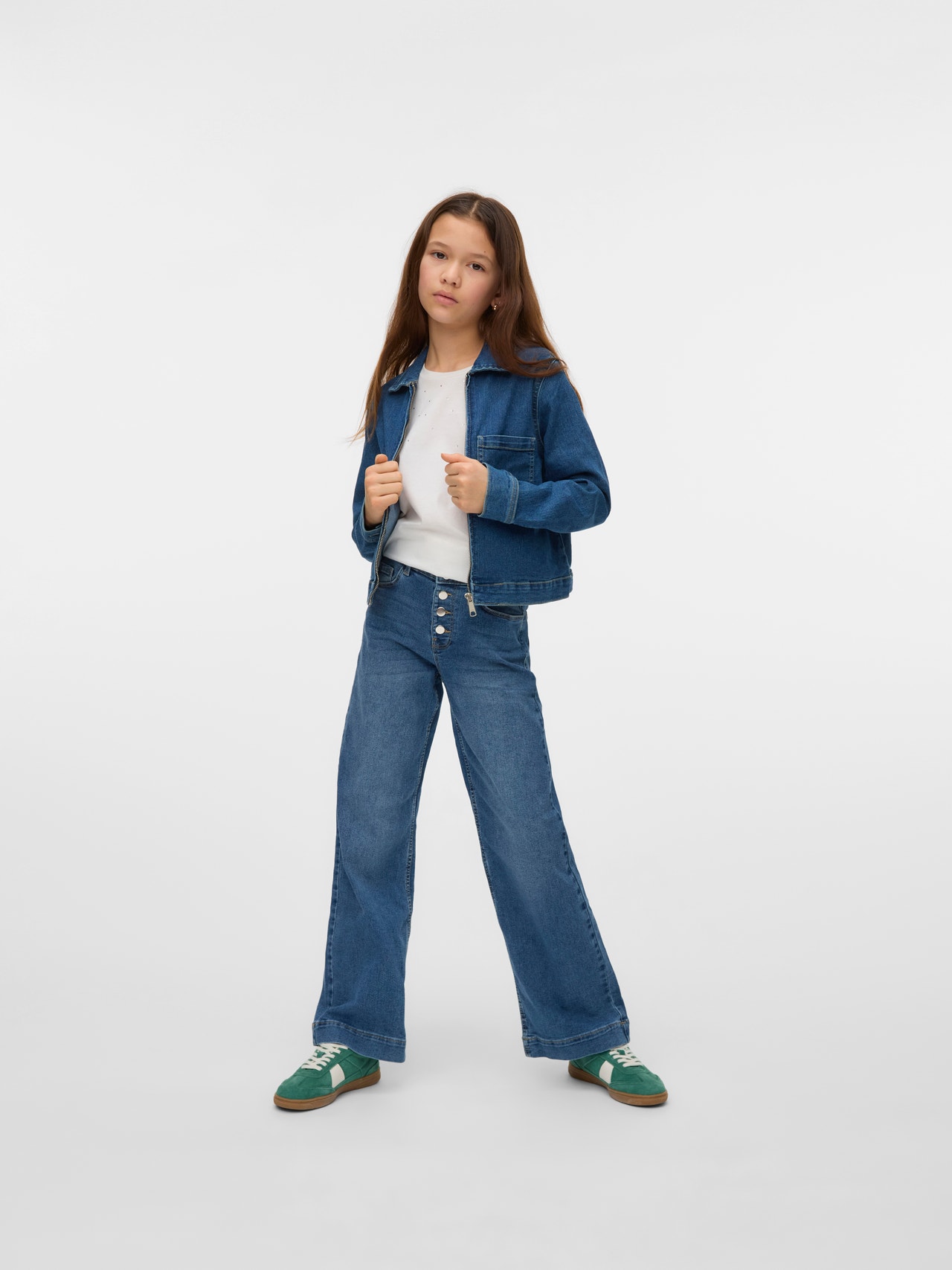¿Acaso hay alguien que jamás se haya puesto una chaqueta vaquera? Esta chaqueta, con su diseño tan icónico y atemporal, se puede combinar de muchas maneras gracias a su tejido resistente y versátil. Póntela con un par de vaqueros para conseguir un look coordinado de lo más chic, y añade una camiseta clásica para darle un toque más desenfadado, o un vestido si buscas algo más atrevido..
