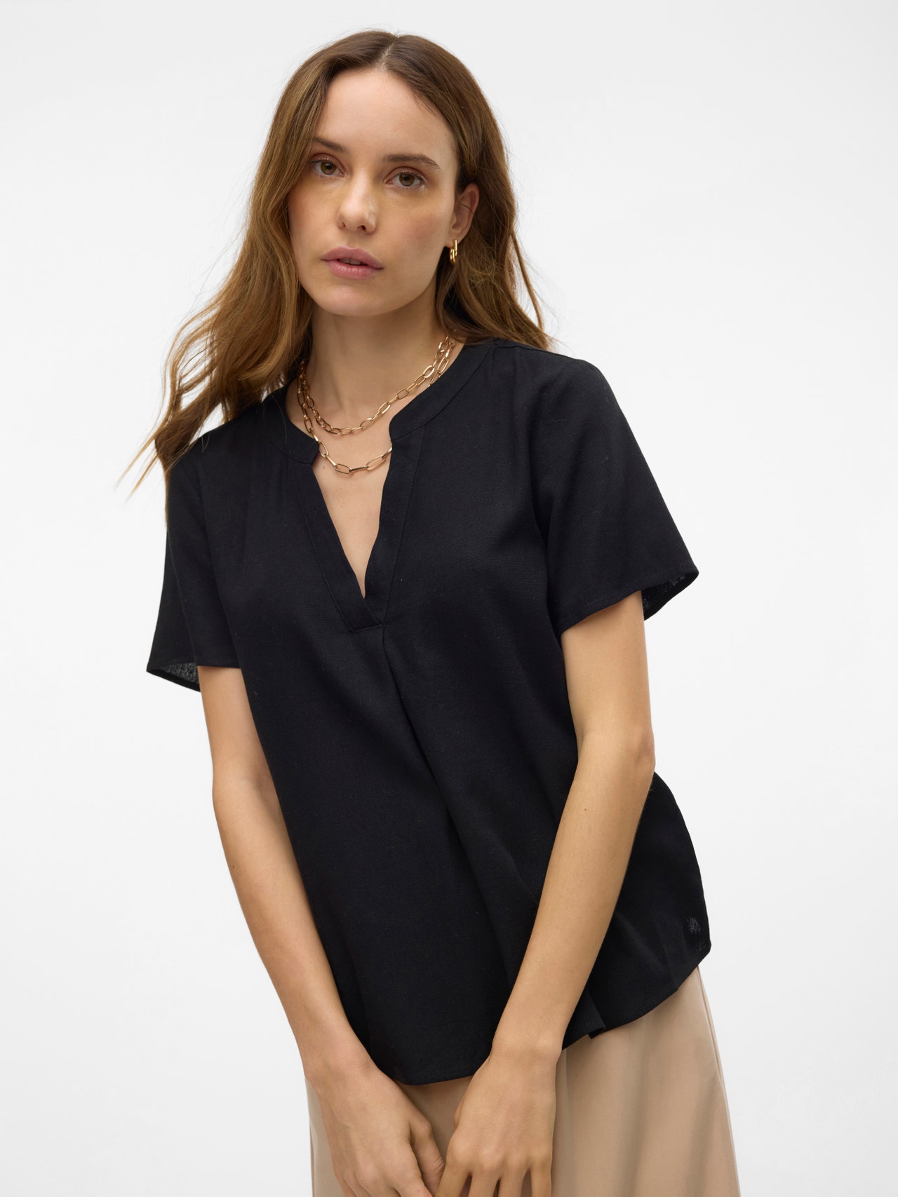 Las blusas son las prendas más versátiles: puedes combinarlas fácilmente con casi todo, desde vaqueros y pantalones hasta faldas y mucho más. Y nuestros modelos no son una excepción. Gracias a este diseño, conseguirás darle un toque sofisticado a cualquier look en un abrir y cerrar de ojos..