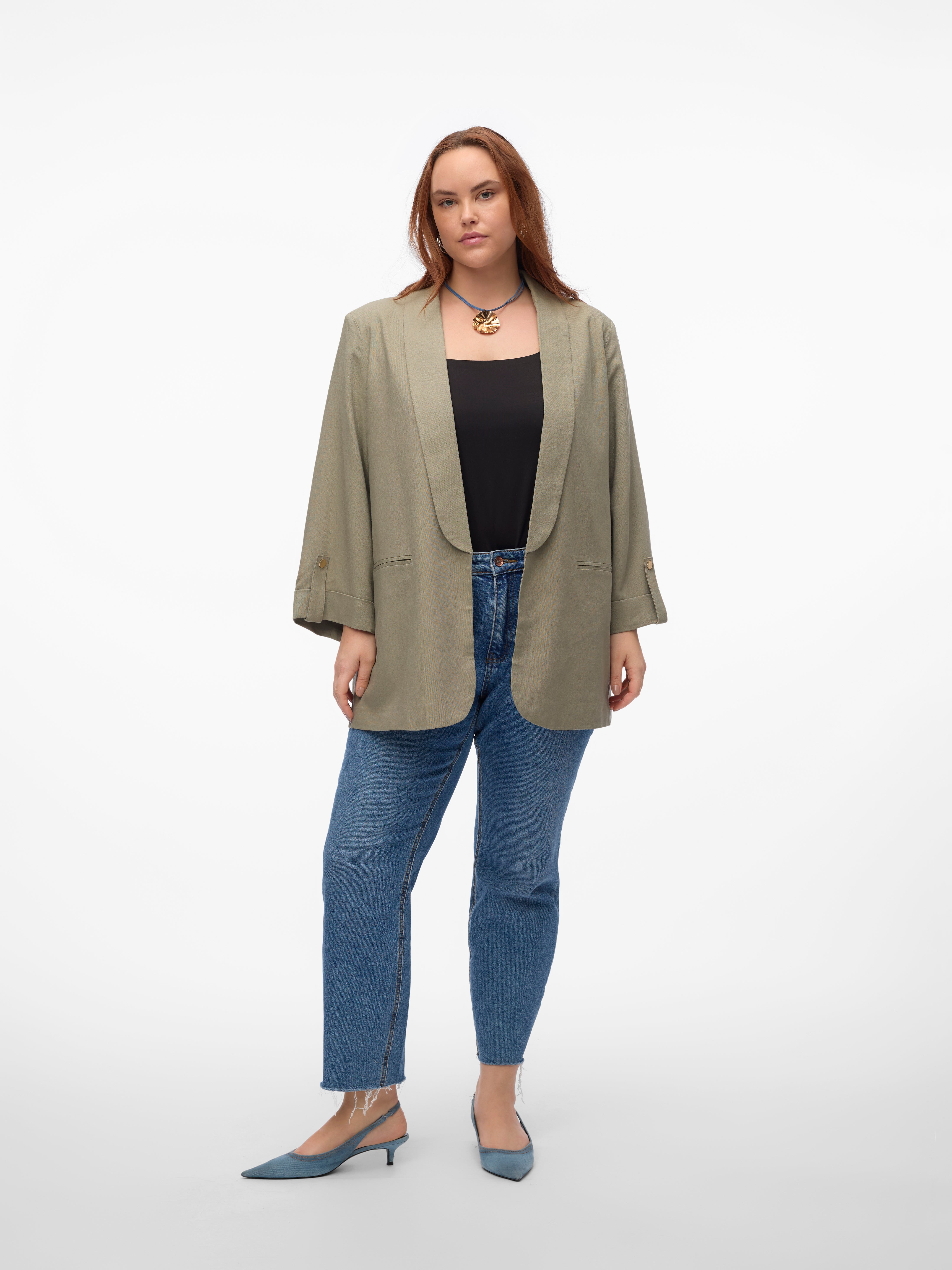 ¿No sabes qué ponerte? Entonces, apuesta por un blazer. Este modelo es ideal para el día a día. Con este blazer siempre conseguirás un look sofisticado y elegante, sin importar si lo combinas con un top o con una camiseta básica. Combínalo con unos vaqueros de corte ancho y unos zapatos de tacón para conseguir un look muy chic para el día a día..