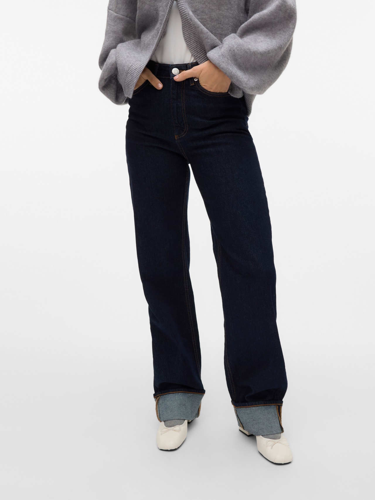 VMTESSA Tiro alto Corte wide leg Vaqueros