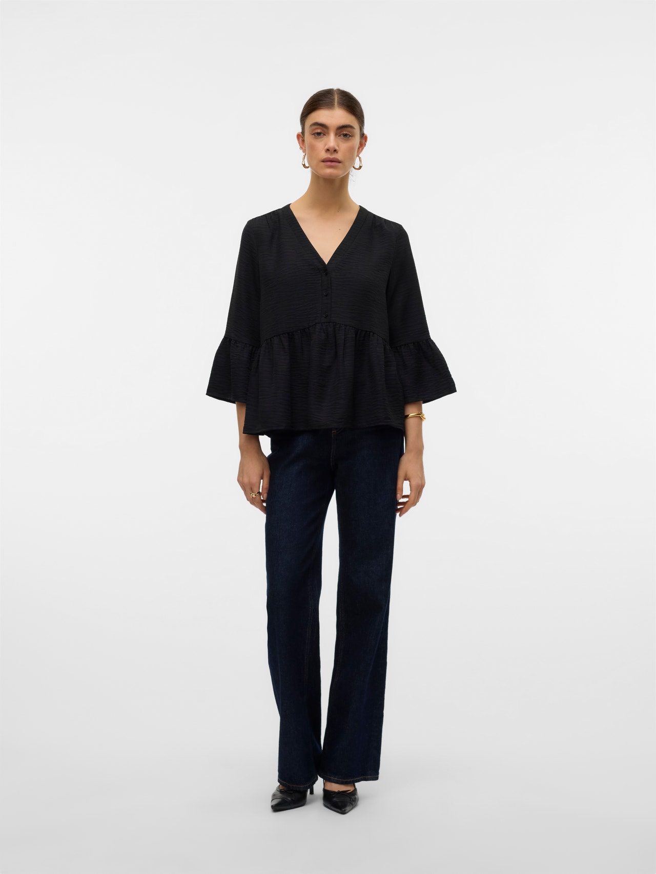 Las blusas son las prendas más versátiles: puedes combinarlas fácilmente con casi todo, desde vaqueros y pantalones hasta faldas y mucho más. Y nuestros modelos no son una excepción. Gracias a este diseño, conseguirás darle un toque sofisticado a cualquier look en un abrir y cerrar de ojos..