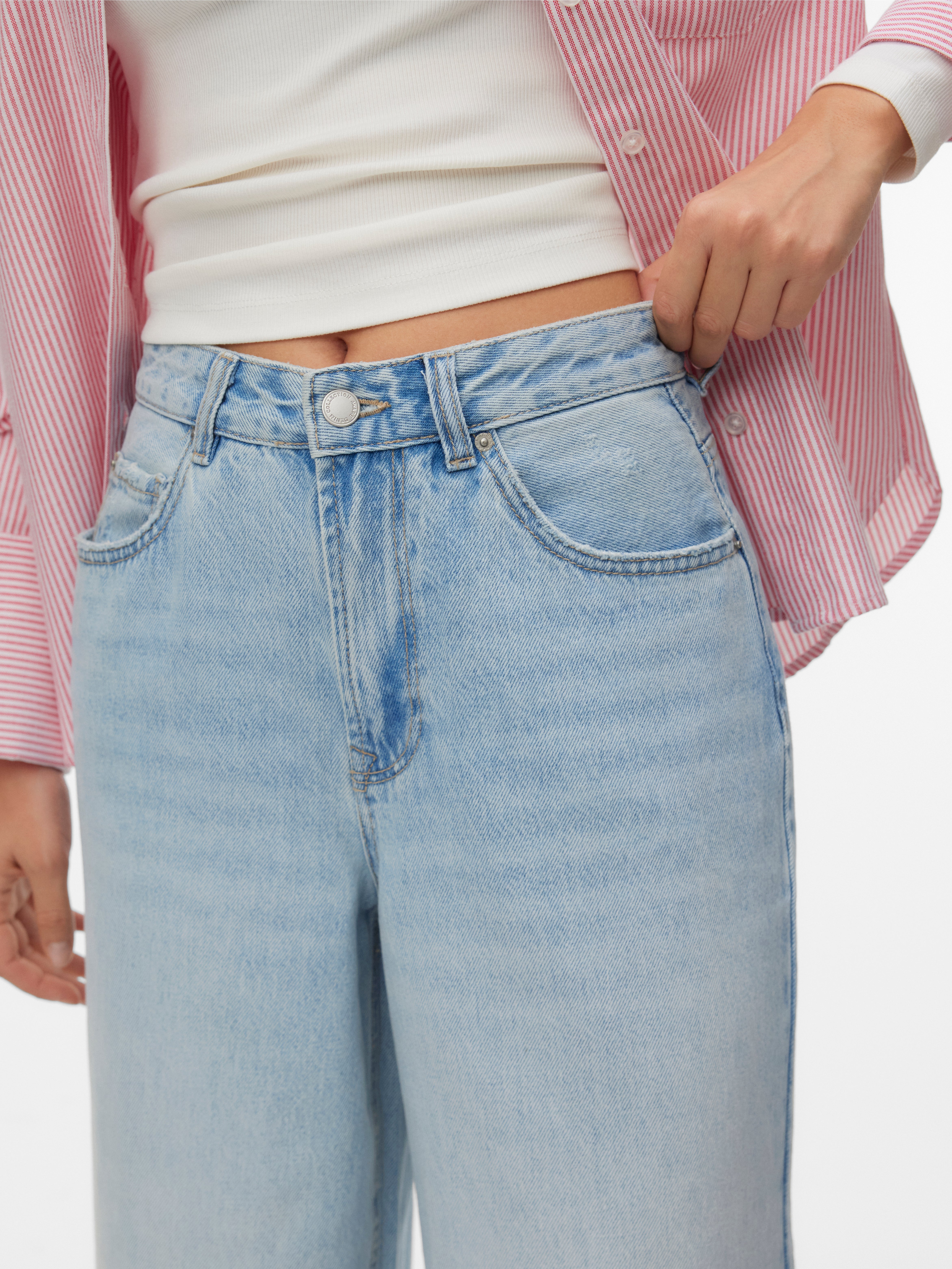 El secreto está en el volumen, y estos vaqueros de corte ancho son la prueba de ello. Su anchura le dan un aire desenfadado e informal. Combínalos con un top de corte slim para realzar tu cintura, o con una camisa extragrande para crear un look holgado y cómodo..