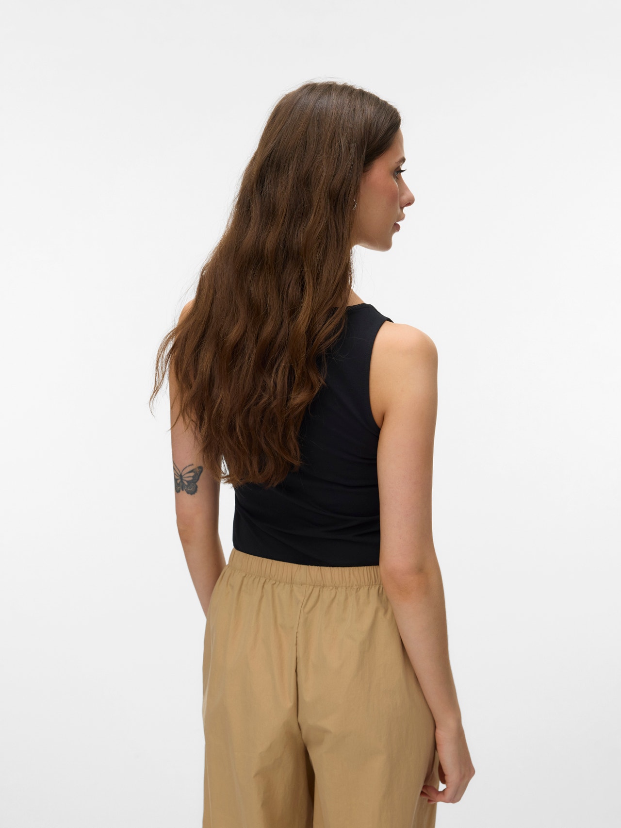En cualquier armario que se precie siempre encontrarás prendas básicas. Nuestros tops básicos son ideales para crear conjuntos con mucho estilo, y este modelo no es la excepción. Combínalo con una chaqueta camisera, unos vaqueros holgados de corte mom y unas botas robustas para conseguir un look cotidiano de lo más desenfadado y vanguardista..