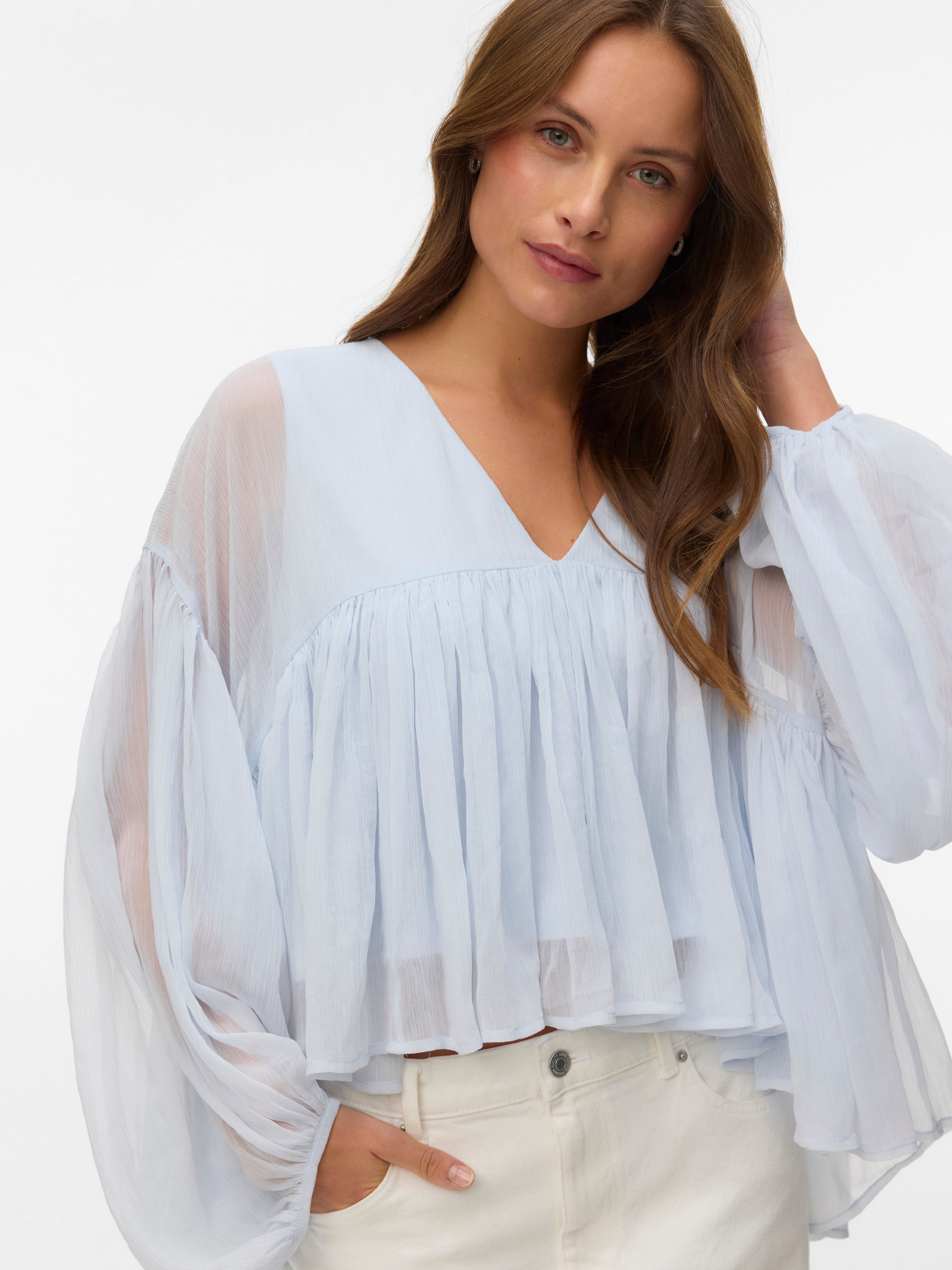 Las blusas son las prendas más versátiles: puedes combinarlas fácilmente con casi todo, desde vaqueros y pantalones hasta faldas y mucho más. Y nuestros modelos no son una excepción. Gracias a este diseño, conseguirás darle un toque sofisticado a cualquier look en un abrir y cerrar de ojos..