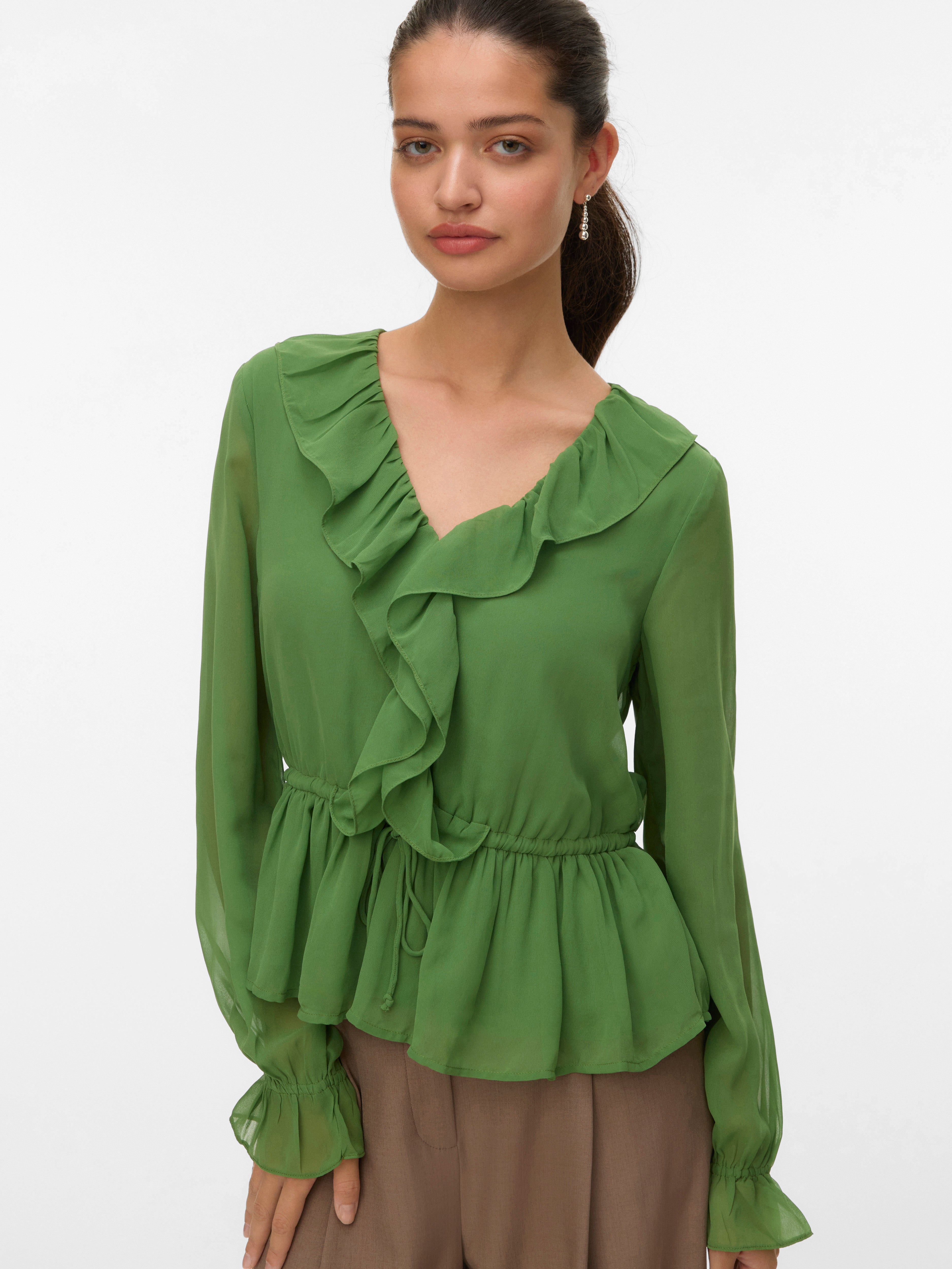 Las blusas son las prendas más versátiles: puedes combinarlas fácilmente con casi todo, desde vaqueros y pantalones hasta faldas y mucho más. Y nuestros modelos no son una excepción. Gracias a este diseño, conseguirás darle un toque sofisticado a cualquier look en un abrir y cerrar de ojos..