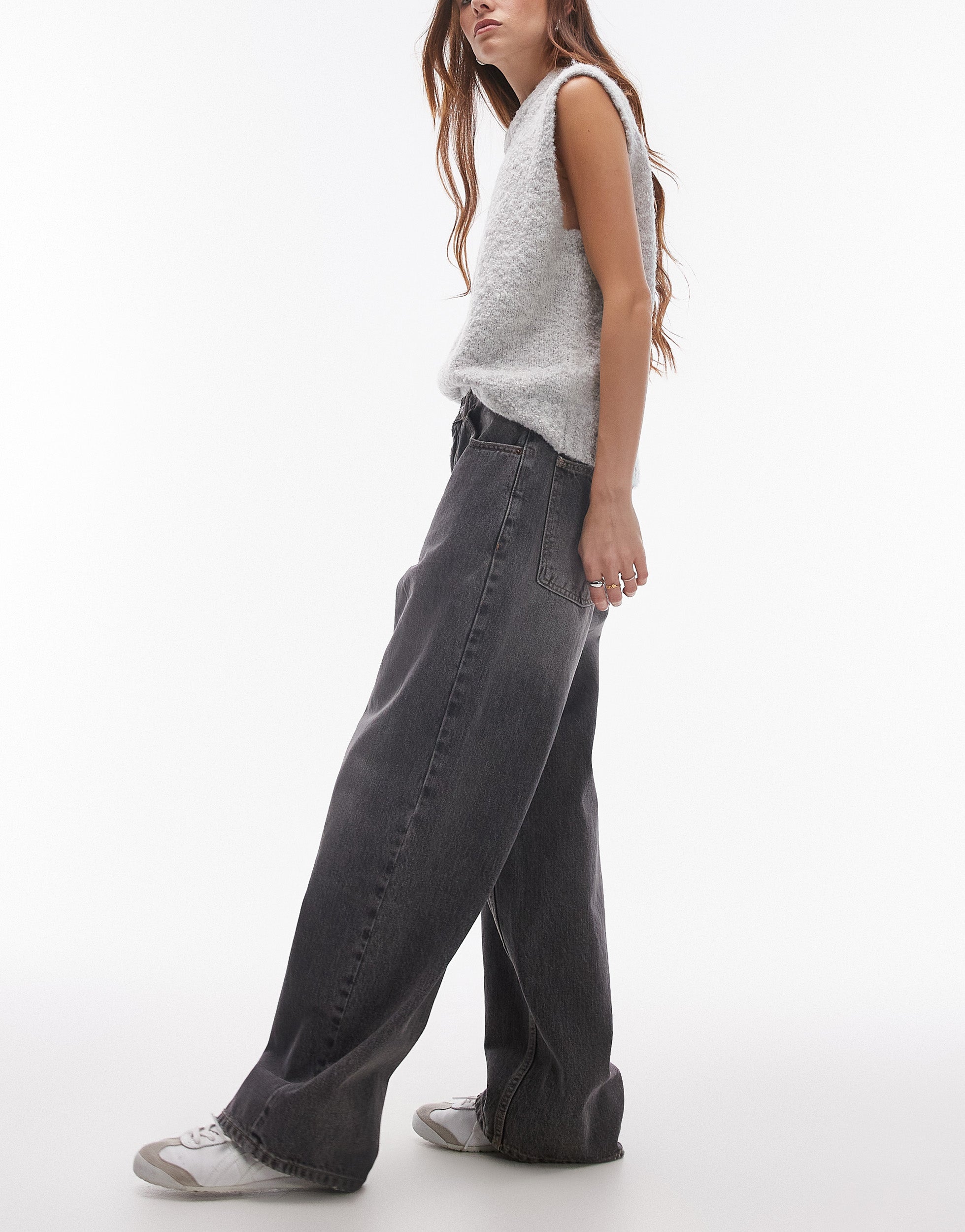 Topshop low rise Cinch jeans in dark vintage grey - GREY
