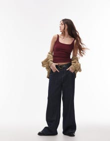Topshop skinny strap scoop rib vest in burgundy - BURGUNDY