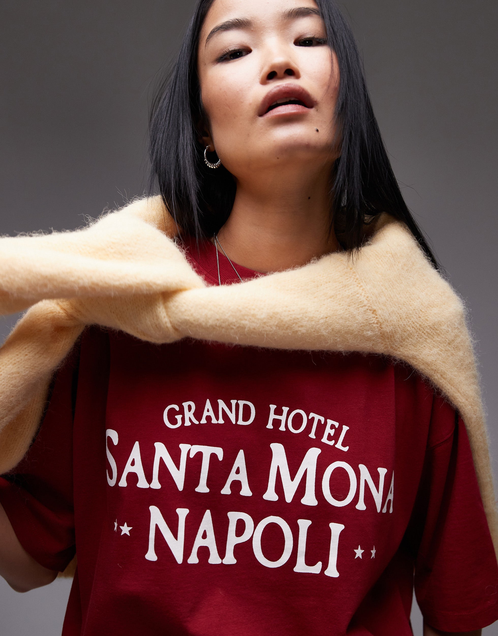 Topshop graphic Santa Mona Napoli oversized tee in red - RED