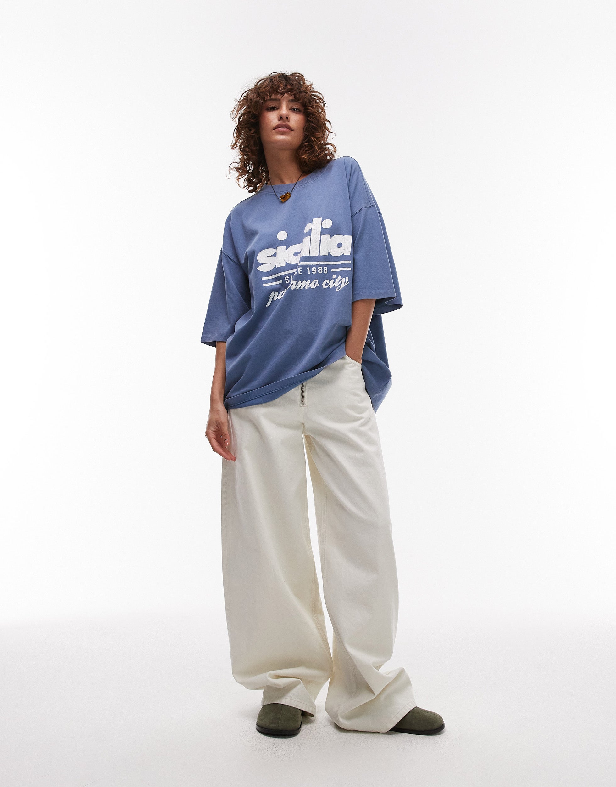 Topshop graphic Sicilia oversized tee in blue - MBLUE