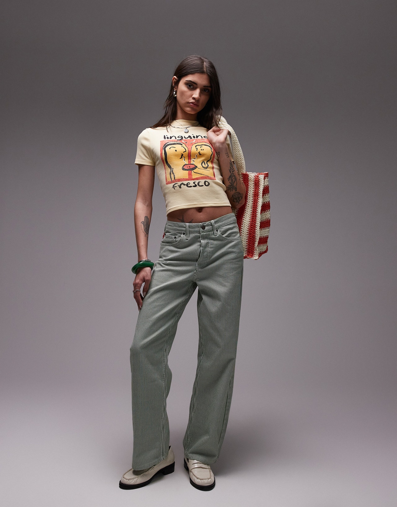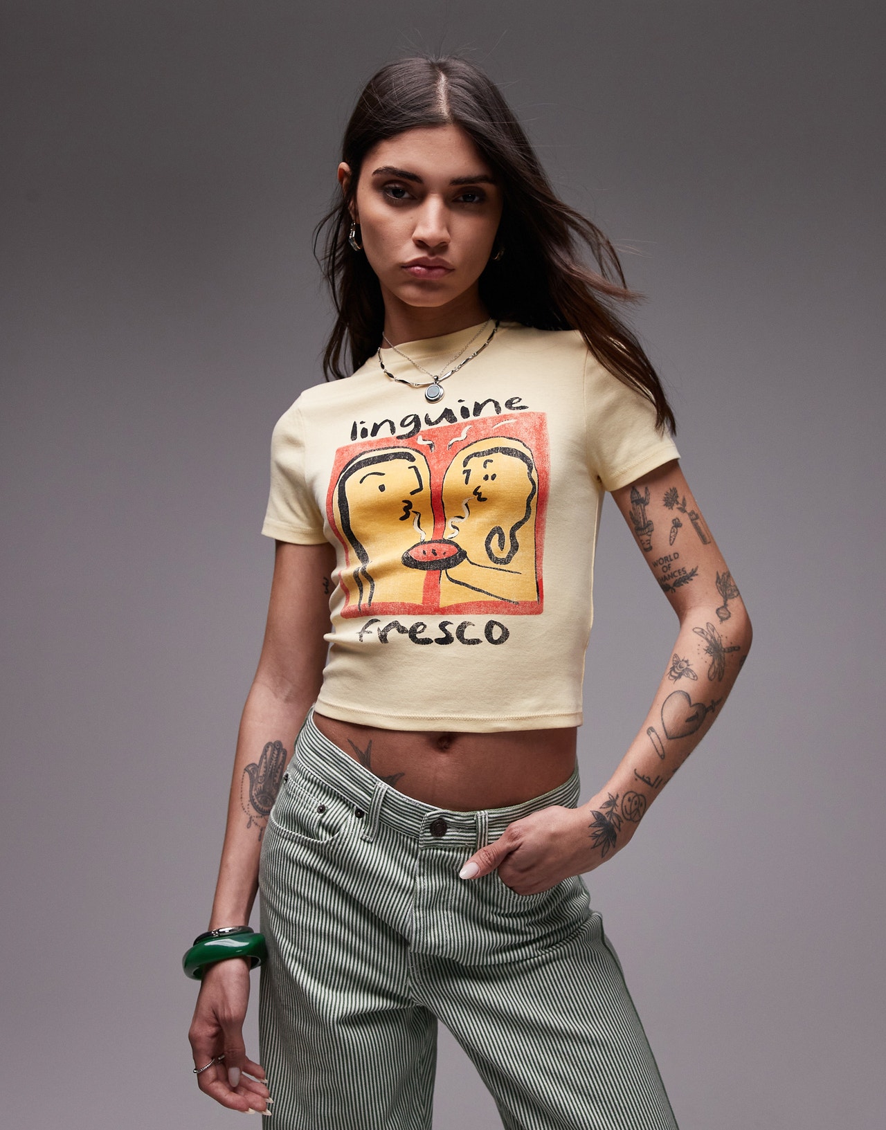 Topshop graphic linguine baby tee in buttermilk - YELLOW
