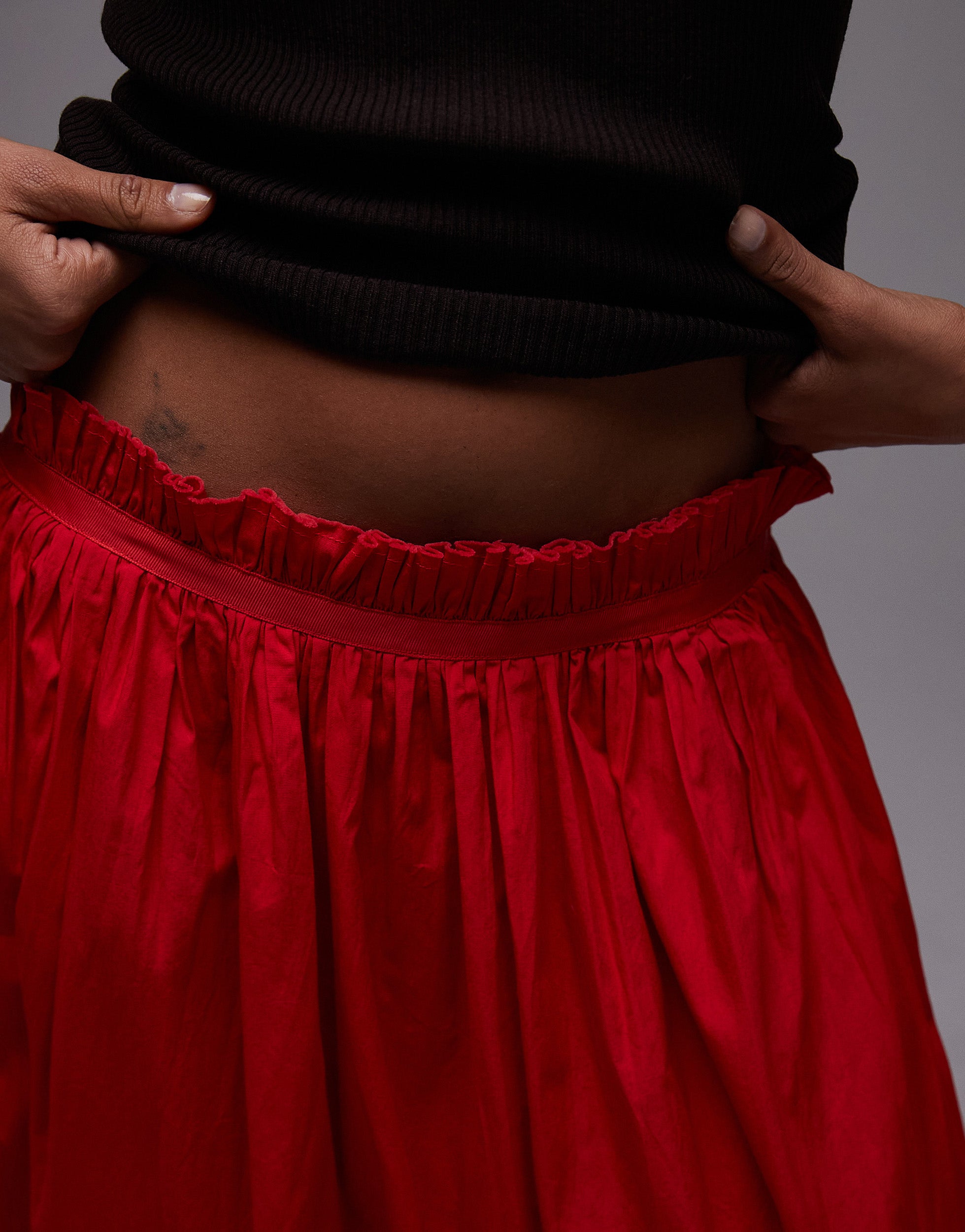 Topshop crinkle cotton laundered full skirt in red - RED